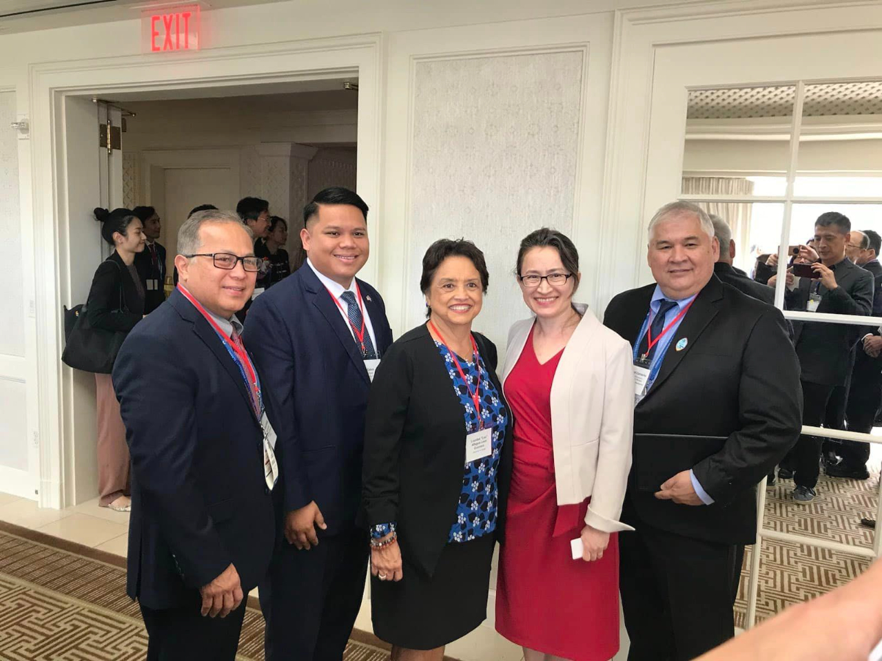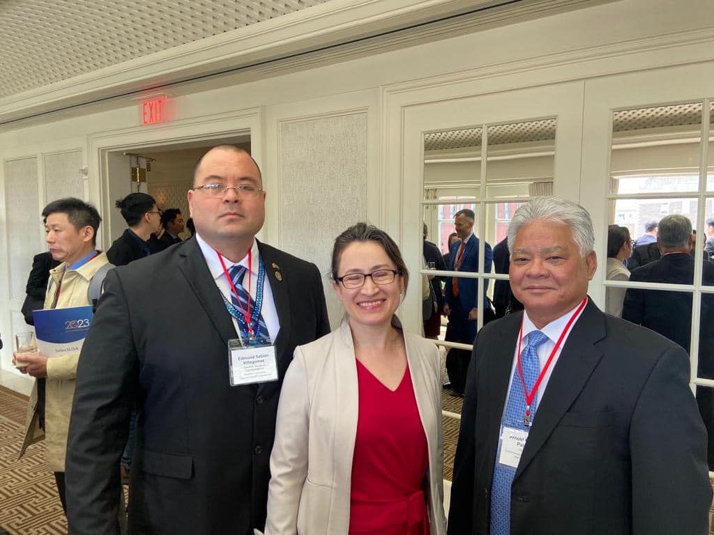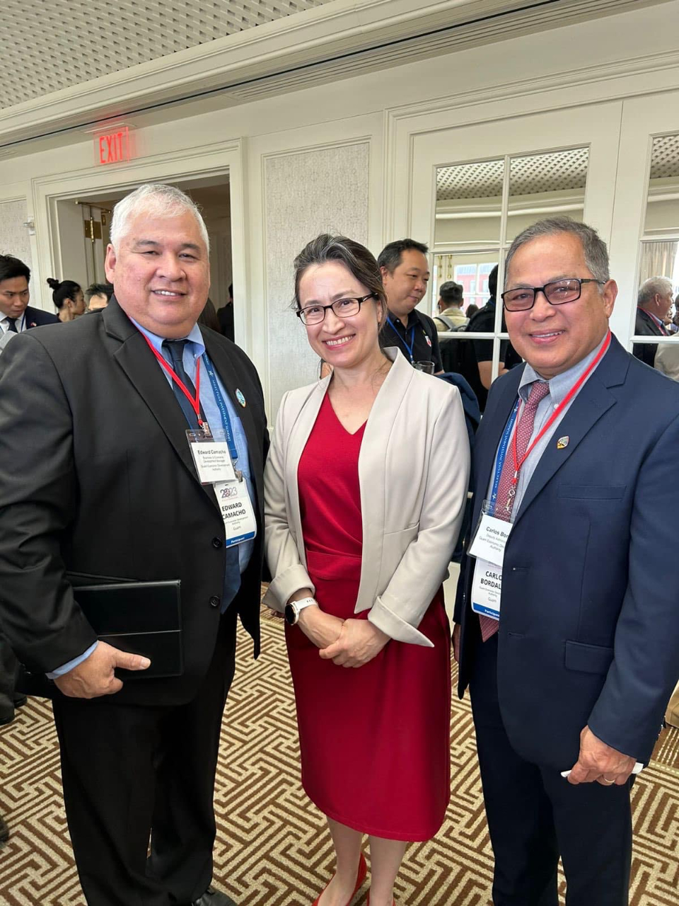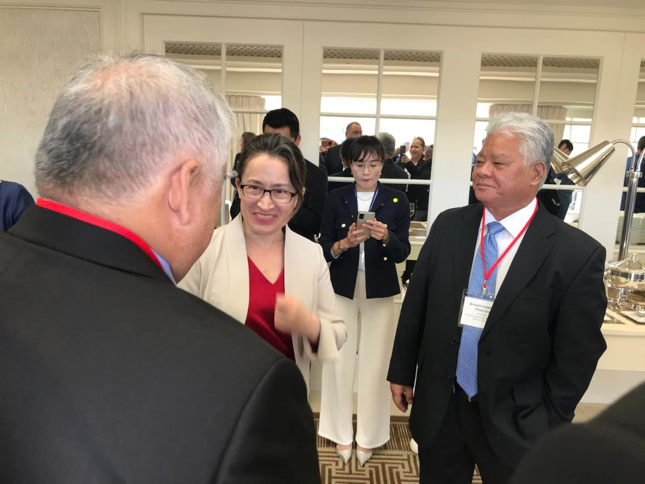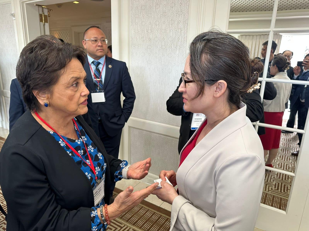 關島總督古蕾露(Lourdes A. Leon Guerrero)及北馬利安納群島邦總督Arnold I. Palacios於本(5)月1日出席駐美國代表處蕭大使美琴主辦之「2023年選擇美國投資高峰會」台灣代表團歡迎酒會,現場冠蓋雲集,雙方交談甚歡