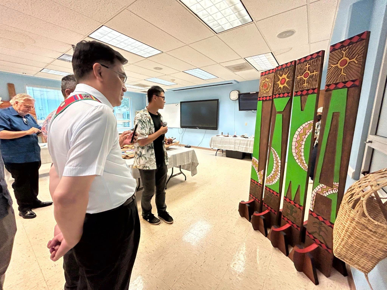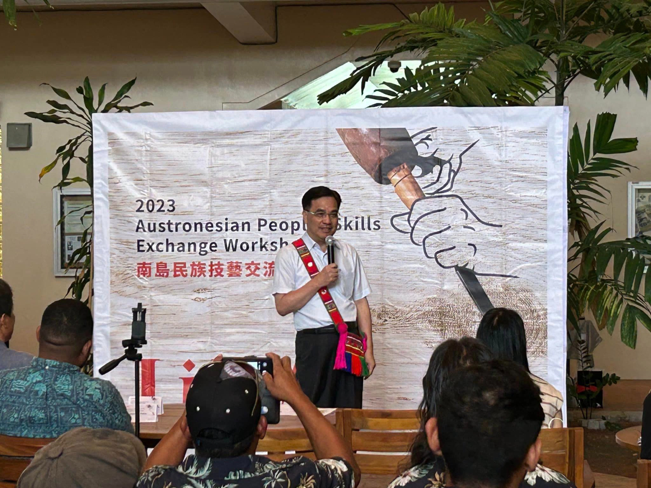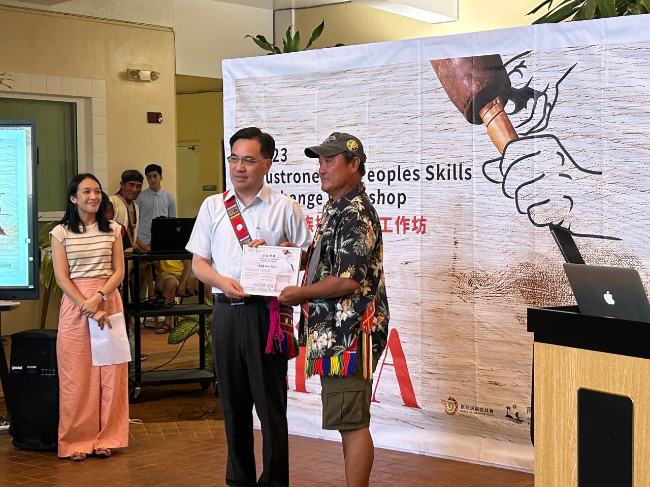 原民藝術和手工藝品成果令人驚艷!台關原民文化交流盛事在關島大學熱烈舉行,我原住民族委員會主任委員夷將·拔路兒Icyang·Parod於本(8)月11日來關主持「南島傳統技藝交流研習營」成果發表展示暨惜別會,本處陳總領事盈連出席並致詞