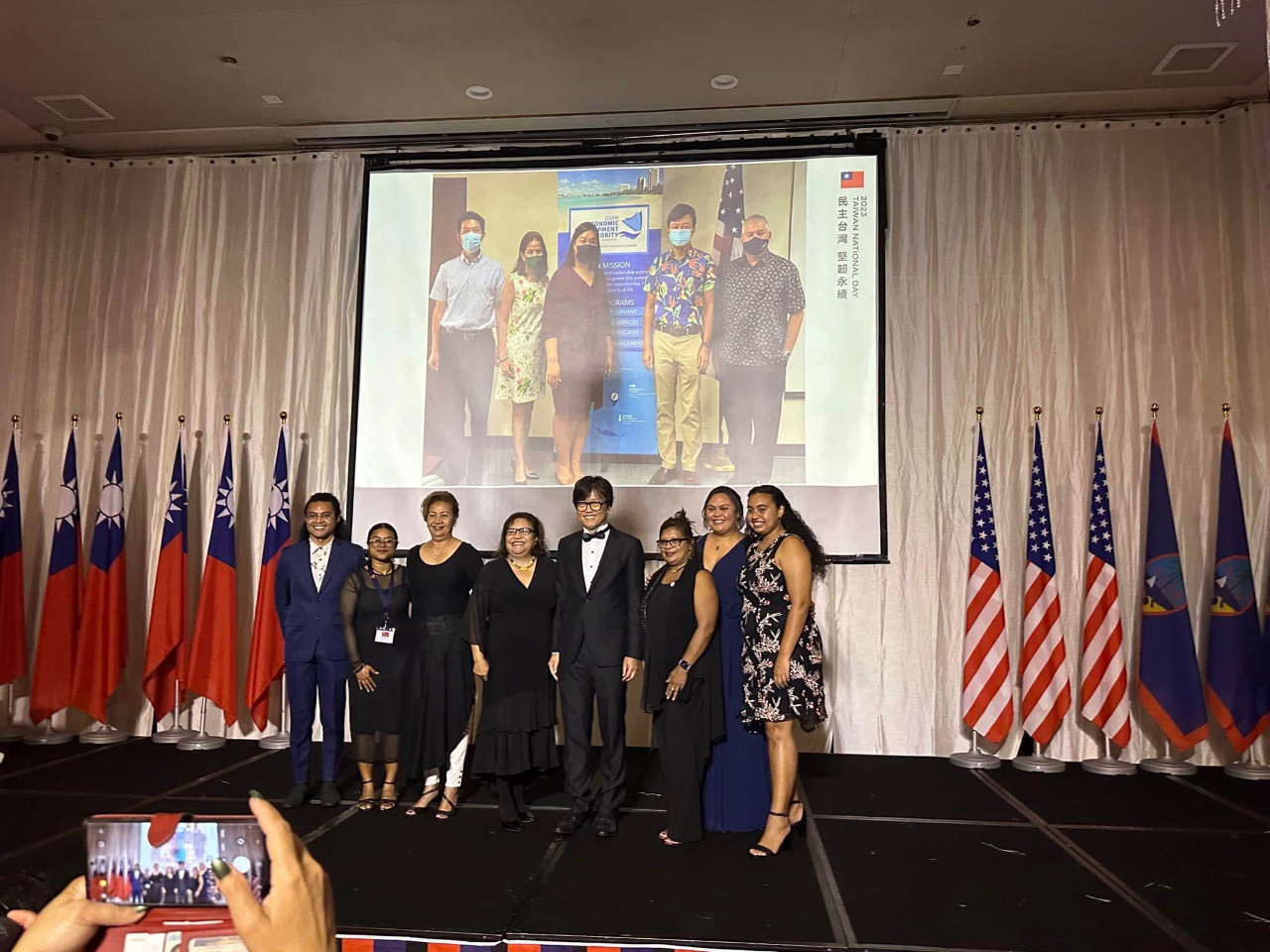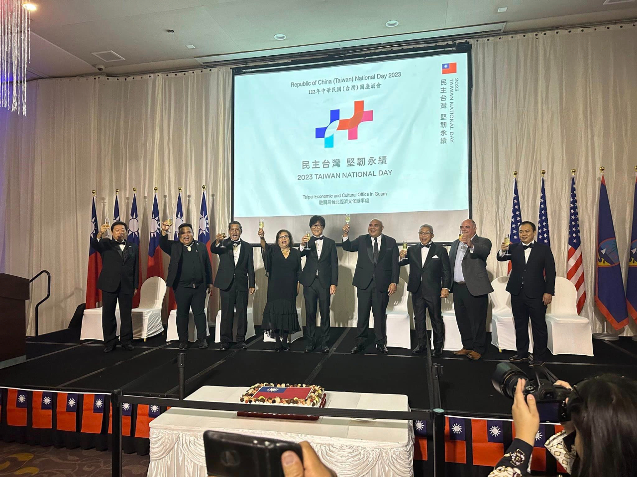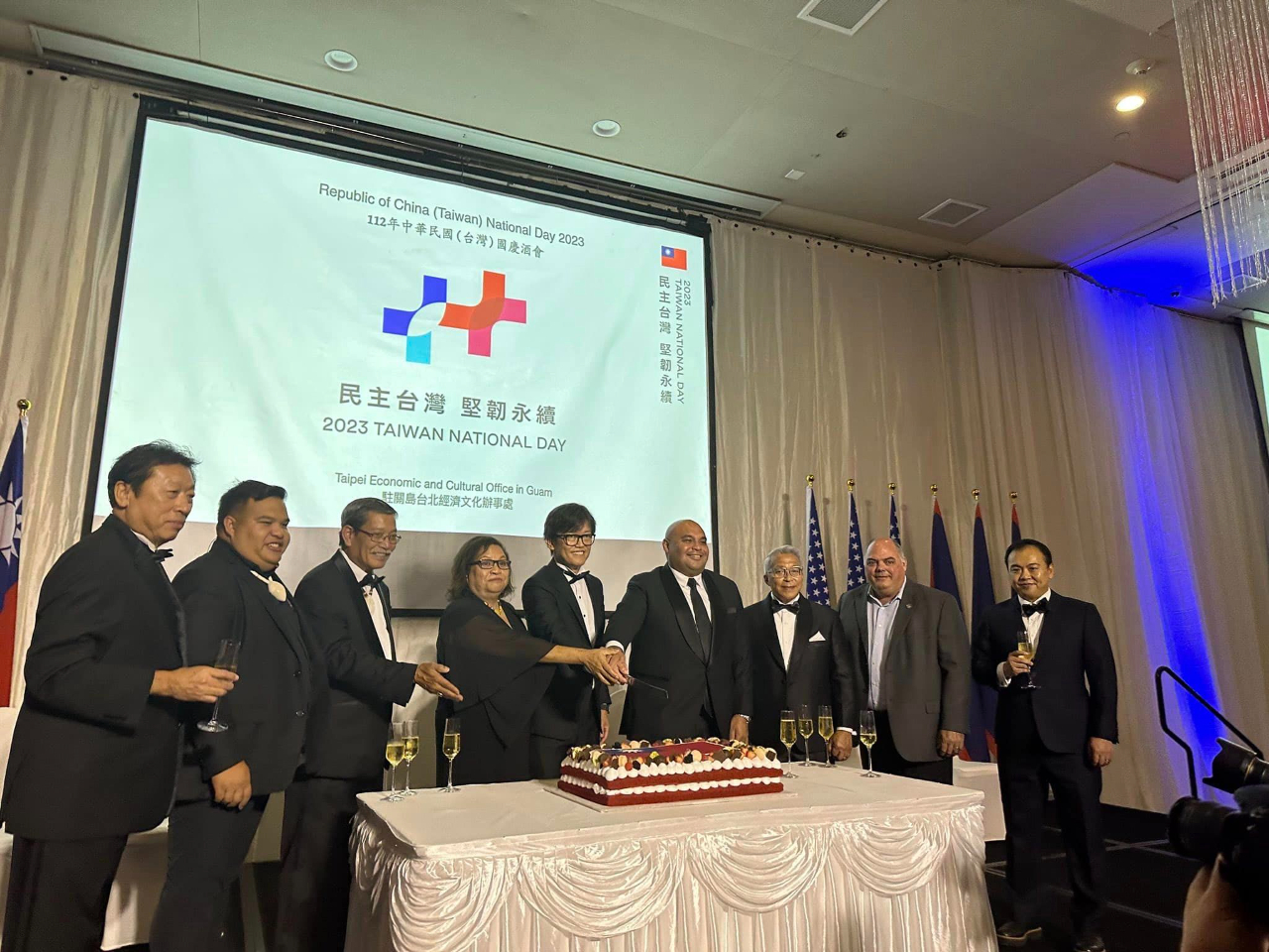 本處於本(10)月6日在關島凱悅酒店盛大舉辦本(112)年國慶酒會,現場嘉賓雲集,共有帛琉副總統兼司法部長席嫵杜(J. Uduch Sengebau Senior)、美國關島副總督譚里諾(Joshua F. Tenorio)、關島議會議員等總共300位政、商、學、僑界賓客出席,關島總督府及關島議會也分別頒贈賀狀及決議同慶中華民國(台灣)112歲生日。曾經在去年及今年訪台的關島副總督譚里諾和關島議會議員盧罕(Jesse A. Lujan)都表示,駐關島辦事處復設3年以來積極強化台關政府及人民交流,尤其在關島面對COVID-19疫情和「瑪娃」颱風災情期間伸出援手,關島政府表達由衷感謝。酒會現場另設有金車噶瑪蘭威士忌品酒攤位,讓賓客享用世界知名的台灣美酒,而關島大學校長安莉克絲亦在致詞中宣布,由關島大學、國立台東大學及國立台灣文學館聯合舉辦之「台灣-關島南島國際藝術展」在當晚正式揭幕,展出南島原民精彩的藝術創作作品,展期至10月10日止,為本處國慶酒會增添不少台灣文化特色。