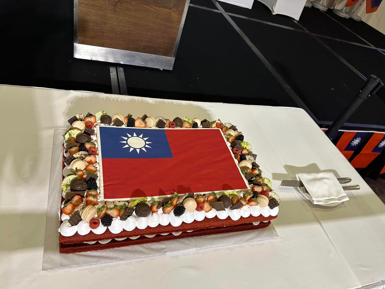 酒會現場另設有金車噶瑪蘭威士忌品酒攤位,讓賓客享用世界知名的台灣美酒,而關島大學校長安莉克絲亦在致詞中宣布,由關島大學、國立台東大學及國立台灣文學館聯合舉辦之「台灣-關島南島國際藝術展」在當晚正式揭幕,展出南島原民精彩的藝術創作作品,展期至10月10日止,為本處國慶酒會增添不少台灣文化特色。