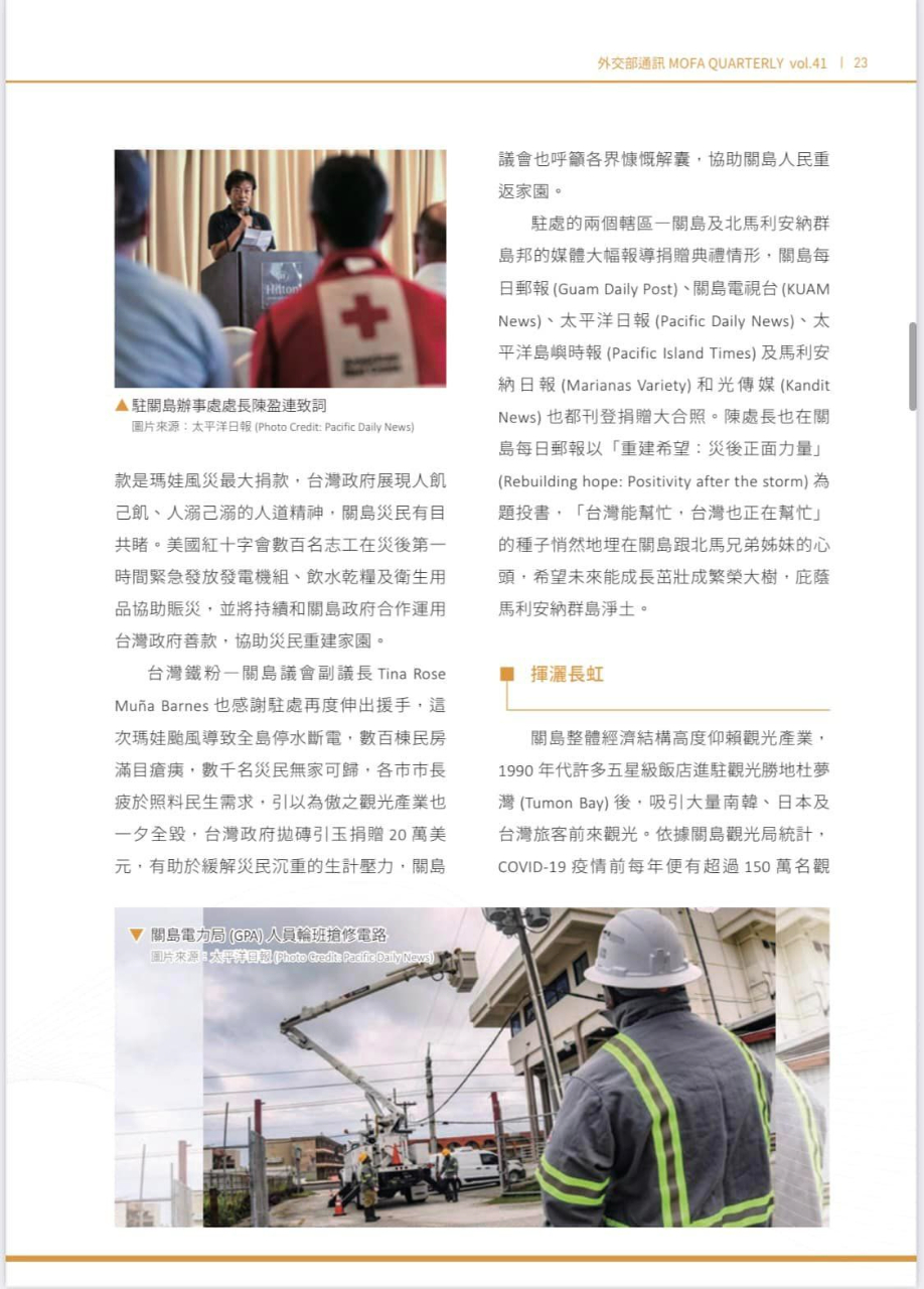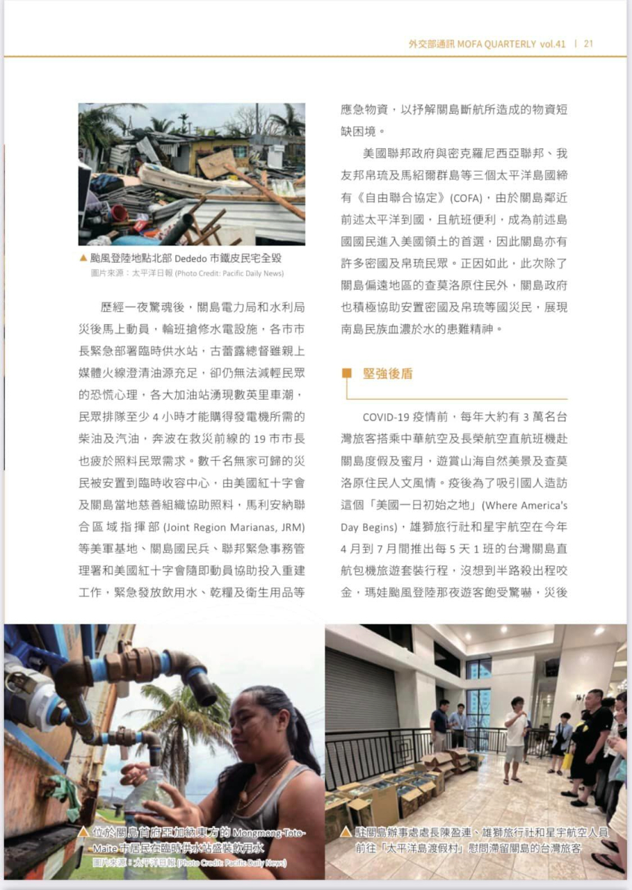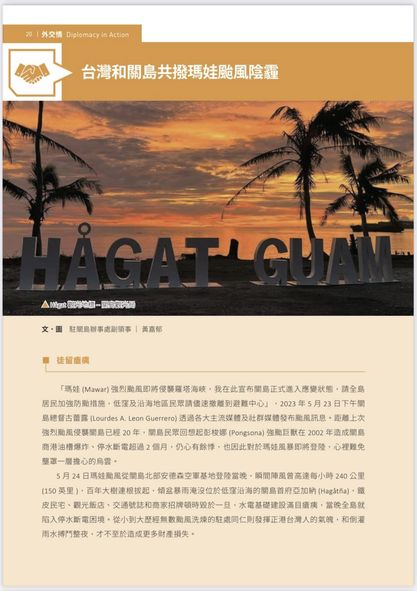 本期「外交部通訊」刊出本處投稿:「台灣和關島共撥瑪娃颱風陰霾」,請看精彩內容 - 駐關島台北經濟文化辦事處 Taipei Economic and Cultural Office in Guam ::: 跳到主要內容區塊