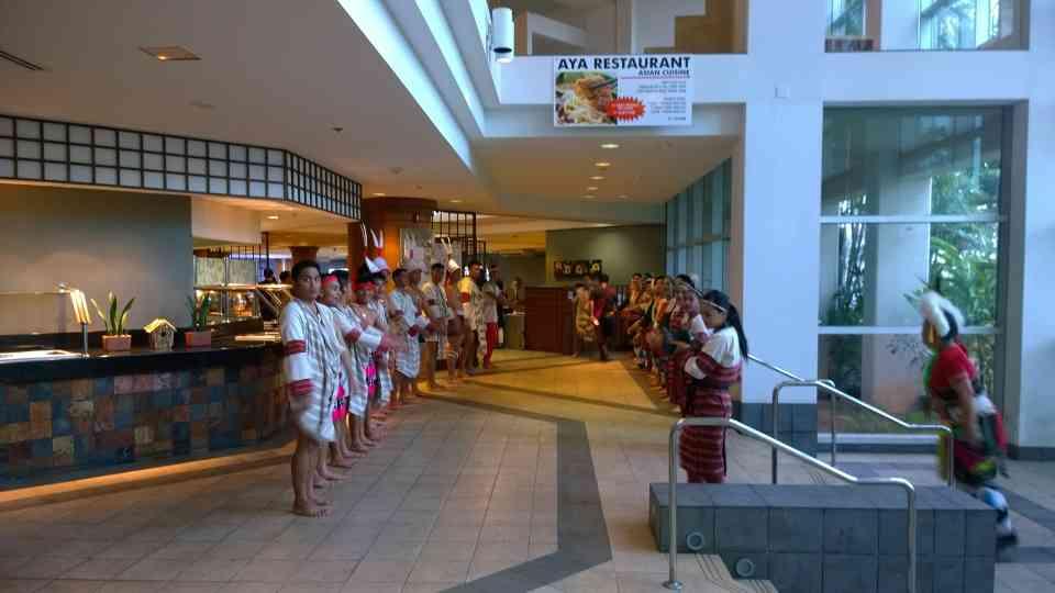 我原住民民代表團在晚會開始前在餐廳門口列隊迎賓 我原住民民代表團在晚會開始前在餐廳門口列隊迎賓