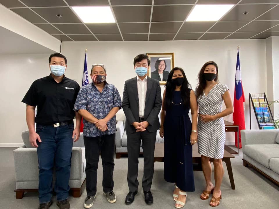 110年5月6日關島經濟發展局董事會成員Siska S. Hutapea與關島機場董事會成員Doyon Ahn Morato等3人在關島大學助理教授陳冠儒陪同下來處拜會陳總領事盈連
