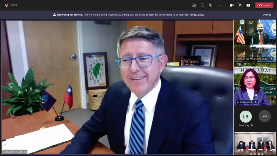 為深化台灣與關島高等教育合作交流,本處與關島大學於本(110)年9月22日上午以視訊會議方式合辦「台灣-關島大學教育高峰會」,本處陳總領事盈連、關島副總督譚里諾、關島大學校長Thomas Krise、資深副校長Anita Borja Enriquez、教育部國際及兩岸教育司司長李彥儀、國立中興大學校長薛富盛、國立台東大學校長曾耀銘、國立屏東科技大學校長戴昌賢、國立勤益科技大學校長陳文淵、私立朝陽科技大學校長鄭道明、私立元智大學副校長李清庭等貴賓應邀與會致詞,並吸引將近250人線上報名參與。會中陳總領事、T副總督及關島議會議長Therese Terlaje共同見證關島大學K校長與台灣6所大學校長或代表共同簽署7件瞭解備忘錄,T副總督、教育部李司長、K校長及各校校長代表致詞時均肯定本處與關島大學合力協助促成此高峰會議,強調此會已為關島與台灣在高等教育合作交流及人才培育開啟嶄新之里程碑,並有助強化雙邊合作夥伴關係及拓展學生國際視野。本會於22日下午圓滿落幕。