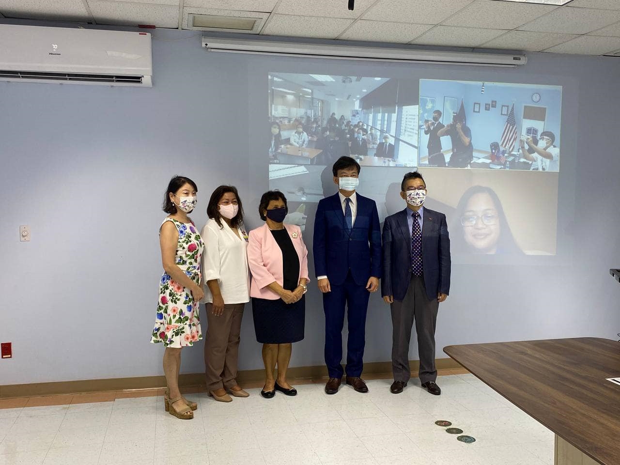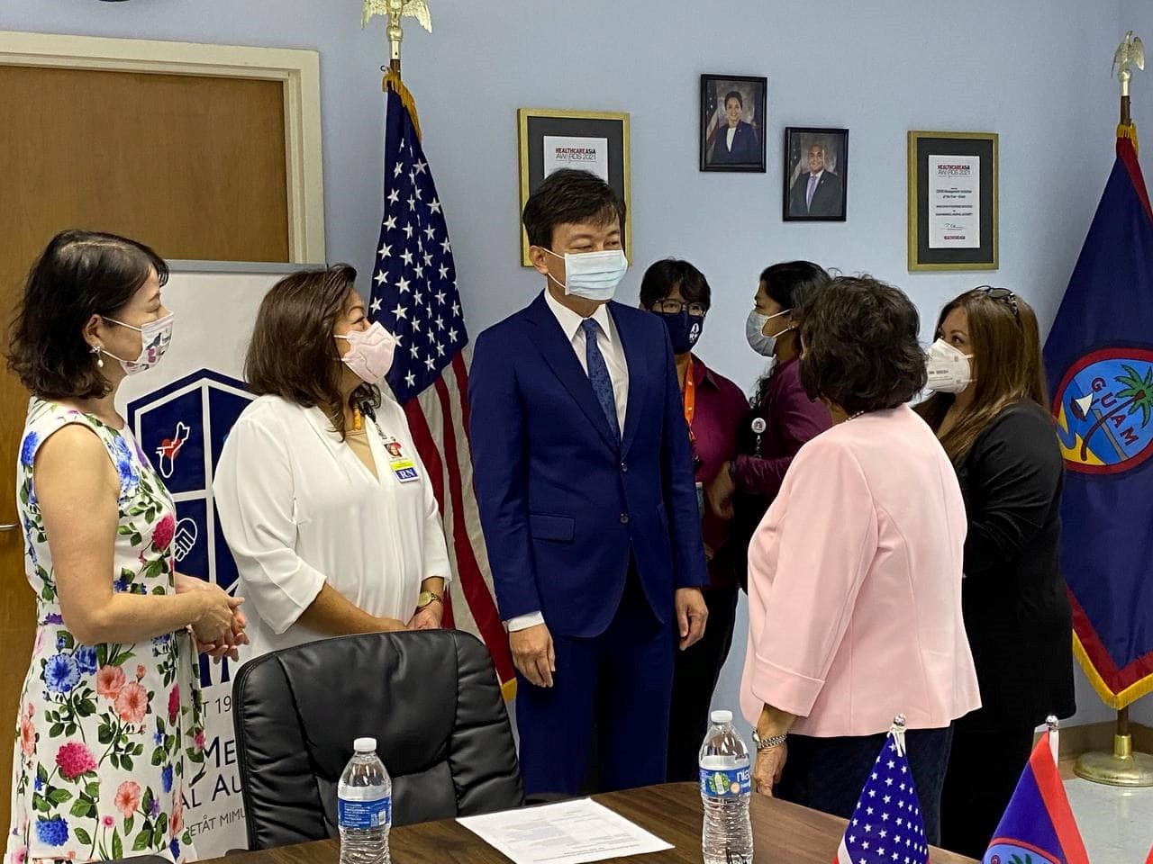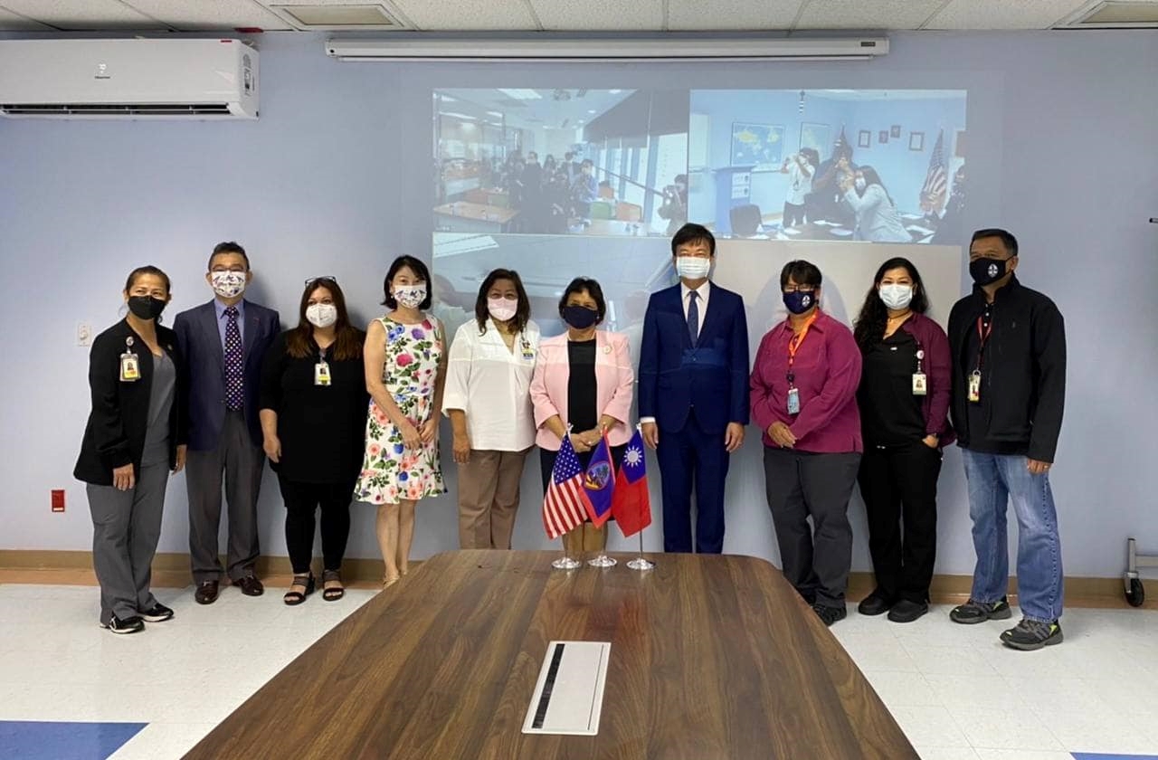 111年3月30日台灣捷格科技捐贈關島紀念醫院智慧醫療平台,以協助遠端照顧慢性疾病患者,本處陳總領事盈連、關島總督古蕾露(Lou Leon Guerrero)、關島紀念醫院院長Lillian Perez-Posadas、捷格科技董事長左典修及關島台灣辦事處處長嚴樹芬於本(30)日共同出席線上捐贈典禮並見證此一具有意義之活動