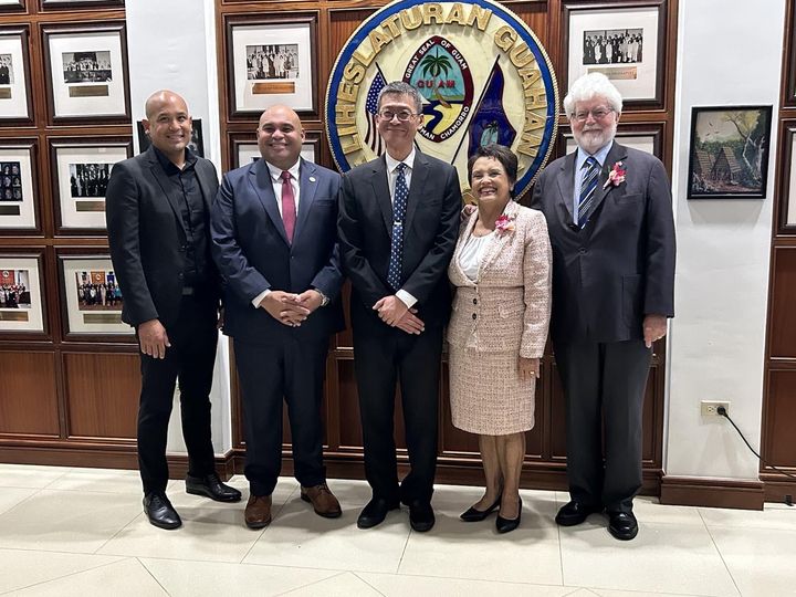 關島總督古蕾露(Lourdes A. Leon Guerrero)於本(3)月15日向本(37)屆關島議會發表「2023年島情咨文」,盧副組長啟章及黃副領事嘉郁於本(3)月15日代表陳總領事盈連受邀出席