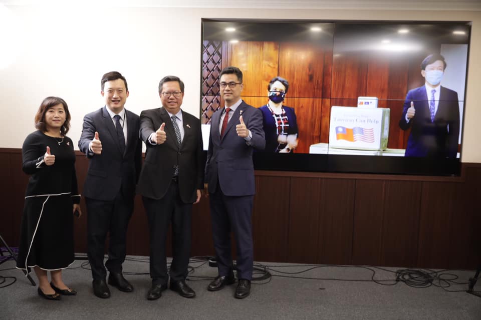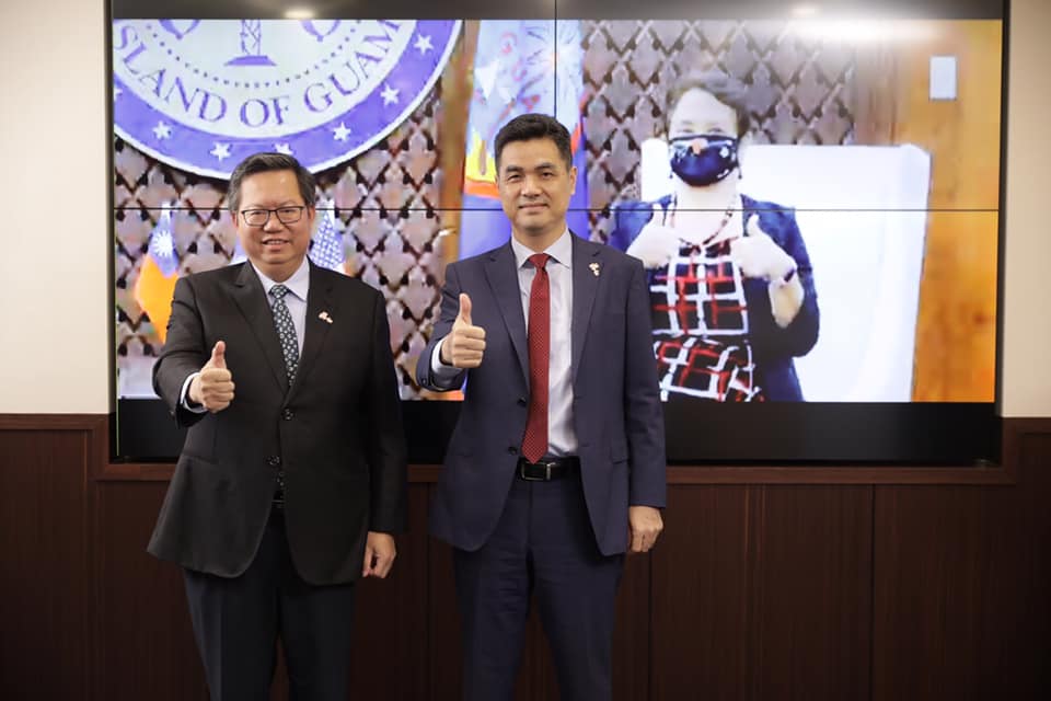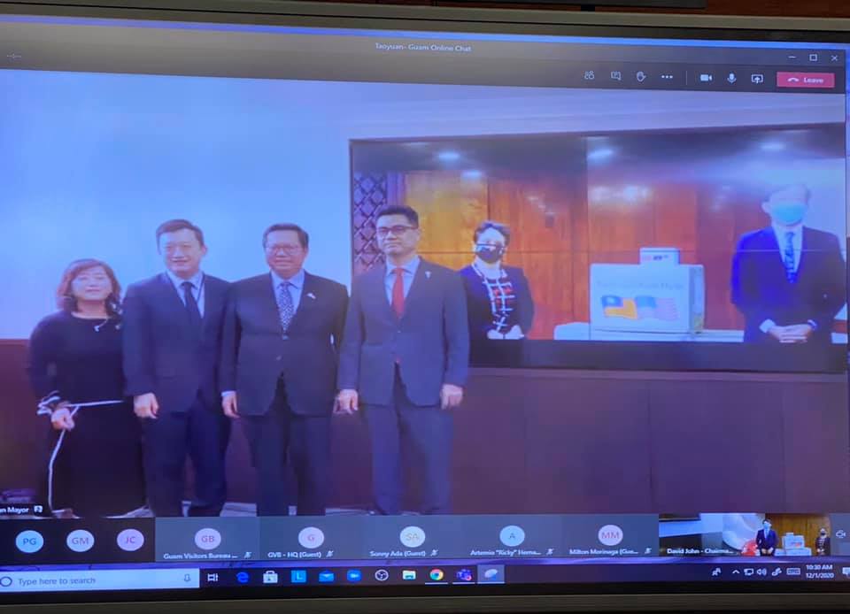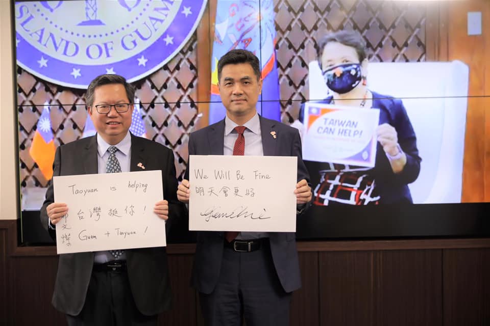 With the assistance of TECO in Guam, on Dec. 1, 2020 Taoyuan City Mayor Cheng Wen-Tsan, accompanied by Taoyuan City Government Secretariat Director Yan Zijie and Starlux Airlines CEO Zhai Jianhua, held a one-hour video conference with Guam Governor Lou Leon Guerrero with the presence of TECO in Guam Director General Paul Chen. The conference was also attended by some high ranking officials from Guam Visitors Bureau (GVB), Guam Economic Development Authority(GEDA) and Guam Airport Authority. Mayor Cheng and Gov. Leon Guerrero exchanged opinions on issues, such as disease prevention, sister cities, sister airports, Taiwan air company's plan to restart flights to Guam, as well as cooperations in trades, tourism, agriculture, academy, education and indigenous culture. During talks with Gov. Leon Guerrero, Mayor Cheng especially thanked Minister of Foreign Affairs Joseph Wu for his efforts to make this event possible. Gov. Leon Guerrero said Taiwan has 23 million people with just less than 600 confirmed cases for COVID-19 and 7 related deaths so far. Taiwan’s success in disease prevention is worth learning from for other countries. She also voiced Guam Government's support for Taiwan's inclusion in WHO and other international organizations. After the conference, Director General Paul Chen represented Taoyuan City Government to donate 16,000 face masks to Guam Government. Gov. Leon Guerrero extended her appreciation and wrote down "Taiwan can help! Guam is inspired by you". Mayor Cheng and CEO Zhai also wrote seperately "Taoyuan is helping." and "We Will Be Fine." For now, both sides are looking forward to further cooperation and development in the future.