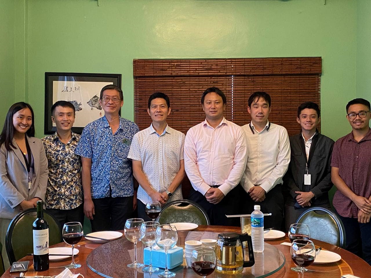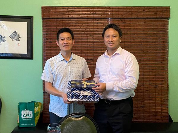 TECO Director General Stephen Hsu, Deputy Director Vincent Lu and all the TECO staff had dinner with Kyungbo Jeong, Consul, Mingsun Chae, Vice Consul, of the Consular Office of the Republic of Korea in Hagåtña, on Feb. 25, 2022, when Consul Jeong and Vice Consul Chae bid farewell to Director Hsu and in the meantime welcomed newly arrived TECO Vice Consul Gary Huang