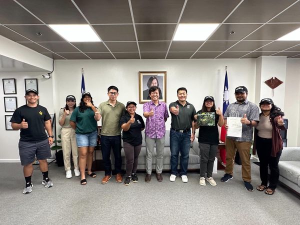 A group of UOG students who visited Taiwan to join the “Smart Agriculture Technology and Culture Experience Study Abroad Program”, accompanied by Dr. Kuan-Ju Chen, Director, and Dr. Leo Liu, Associate Director, of the UOG Asia Pacific Studies Center, paid a visit to Director General Paul Chen on Jul. 19