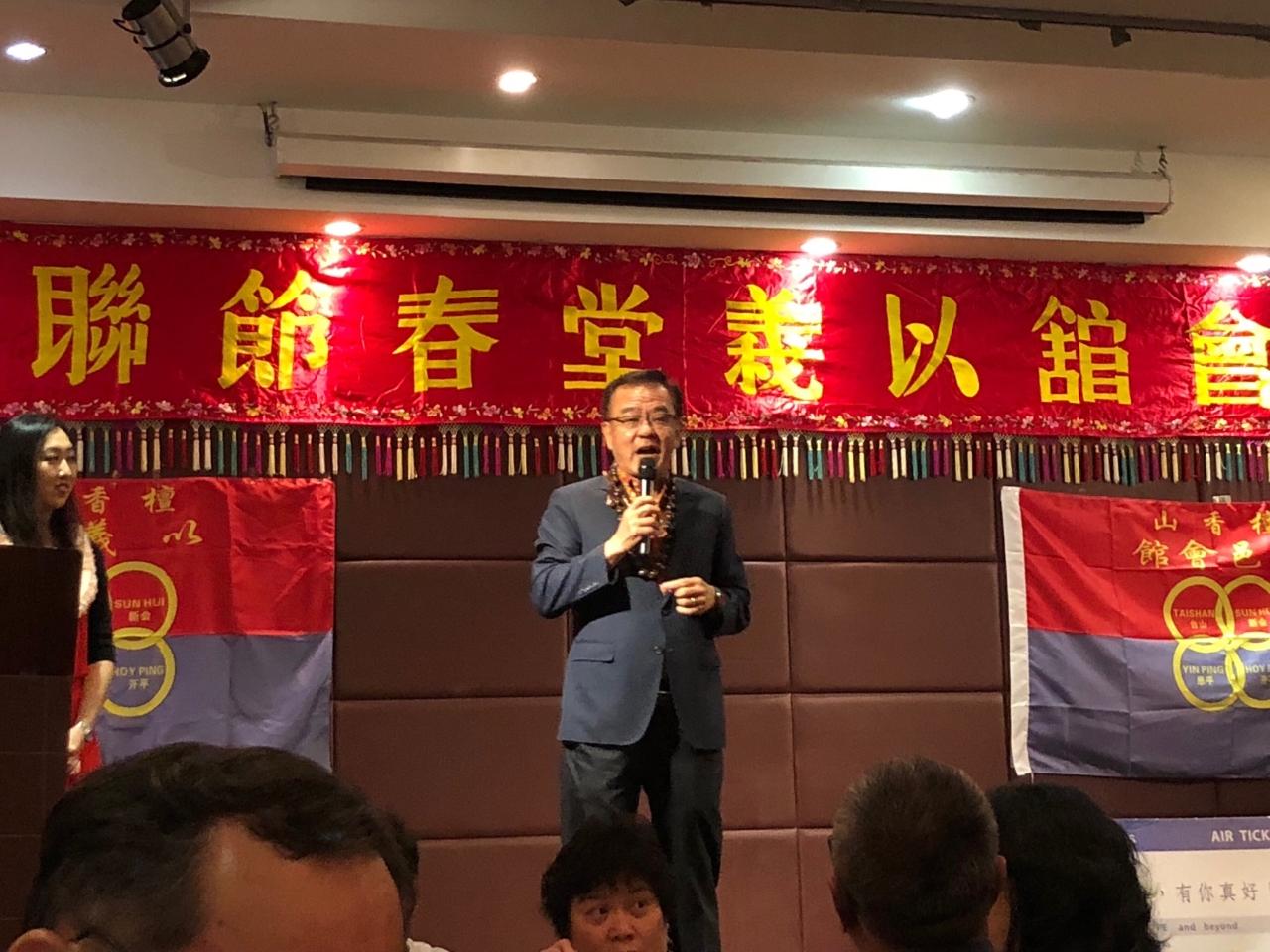 夏威夷四邑會館及以義堂本(108)年3月30日於檀香山市翡翠王朝餐廳舉行年度春宴,駐檀香山辦事處曾永光處長、廖烈明副處長及王裕宏副組長出席,與約300名該會會員及僑胞一起同樂,歡慶新春,現場特由四邑會館耆老陳衡前會長講述兩社團發展歷史,並安排社團歷任幹部及現任職員合影,氣氛熱鬧溫馨。