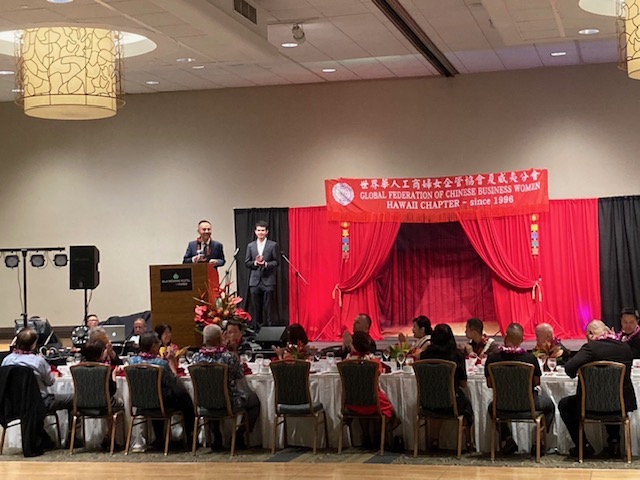 張詩瑞處長應邀參加世界華人工商婦女企管協會夏威夷分會春宴,高度讚揚該會促進台夏經濟文化交流,以及積極推動兩性平權和婦女權益。