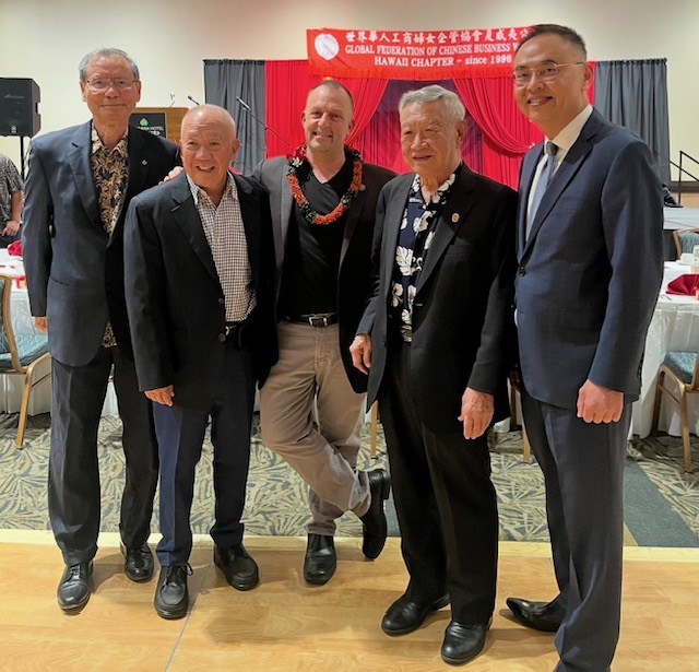 張處長感謝分會謝雪華會長的支持,席間並與夏威夷州長Josh Green、州眾議長Nadine Nakamura及與宴的僑領互動交誼,氣氛熱絡歡愉。