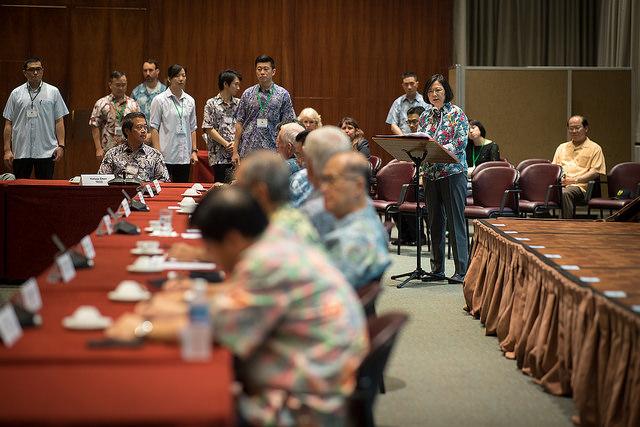 President Tsai Ing-wen and her accompanying delegation made a transit stop in Hawaii, USA on her diplomatic mission under the theme "Sustainable Austronesia, Working Together for a Better Future—2017 State Visits to Pacific Allies." At 2:30 p.m. on October 28 Hawaii time (8:30 a.m. October 29, Taipei time), the president attended a seminar with scholars from the US-based East West Center and the Pacific Forum of the Center for Strategic and International Studies (CSIS).