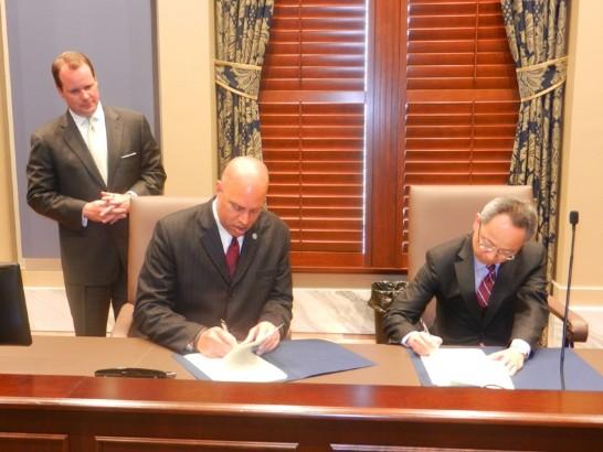 駐休士頓辦事處處長夏季昌與美國奥克拉荷州交通廳長湯普森(Michael Thompson)代表雙方政府於本(103)年5月14日下午3時在奥州政府5樓新聞發布室簽署臺灣與奥州駕照相互承認協定。這是駐休士頓辦事處繼阿肯 色州之後,再度成功洽簽駕照相互承認協定,也是奧克拉荷馬州首度與外國政府簽署此類協定。上述協定簽署後即日起,年滿18歲,持臺灣有效駕照,合法居住於 奧州的我國公民,無需通過筆試及路考測驗,可換發奥州駕照。簽署典禮由奧州副州長藍姆(Todd Lamb)見證,藍姆副州長幕僚長畢爾(Keith Beall)、奧州交通廳助理廳長戴維森(Gerald Davidson)及地區指揮官洛迪斯(Rusty Rhoades)等多位該廳官員在場觀禮。
