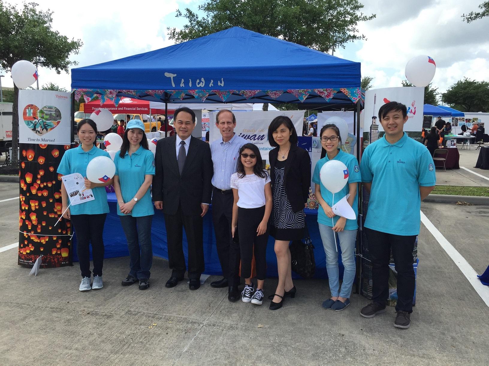 今年駐休士頓辦事處黃敏境處長在教育組周慧宜組長陪同下,特地前往活動會場幫工作人員加油打氣,不但提昇士氣,也為台灣攤位帶來絡繹不絕的人潮;甫卸任的HISD學區教育委員Greg Meyers、新上任的教育委員Anne Sung以及學區總監Richard Carranza夫婦均到教育組攤位致意。
