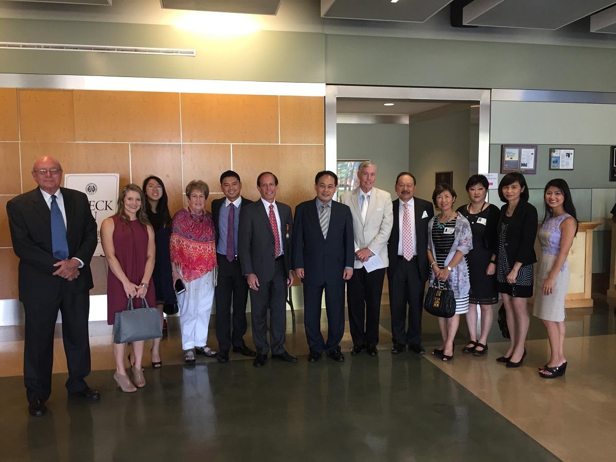 前HISD教育委員Greg Meyers(左六);駐休士頓辦事處處長黃敏境(中);休士頓市議員Jack Christie(右六);休士頓台灣商會會長梁慶輝夫婦(右五及四);華語老師陸燕琪(右三);駐休士頓辦事處教育組組長周慧宜(右二)