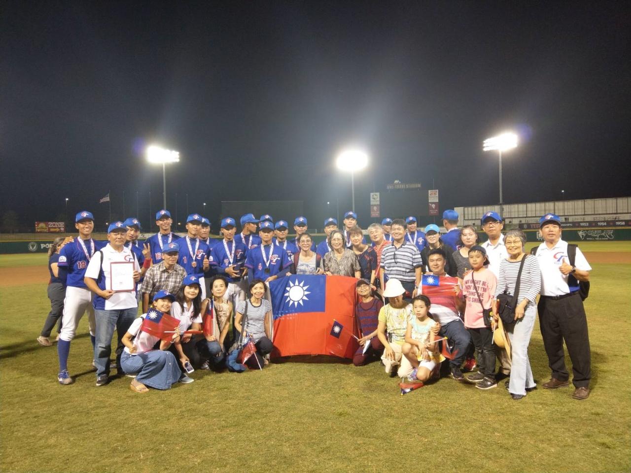 桃園市平鎮高中青棒代表隊獲得冠軍與僑胞合影