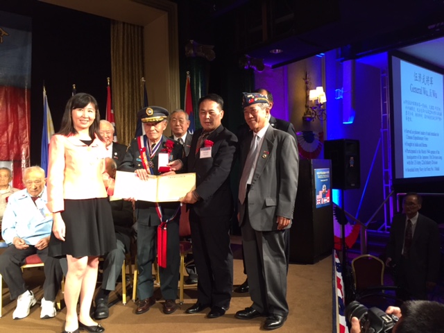 駐休士頓辦事處黃敏境處長於達拉斯全僑紀念中華民國抗戰勝利七十週年餐會與中華民國及美國退伍軍人合影。