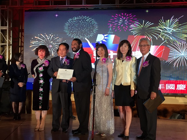 - 駐休士頓辦事處黃敏境處長夫婦與聯邦眾議員Al Green (D-TX)及104年國慶籌備會黎淑瑛主任委員於國慶餐會合影。
