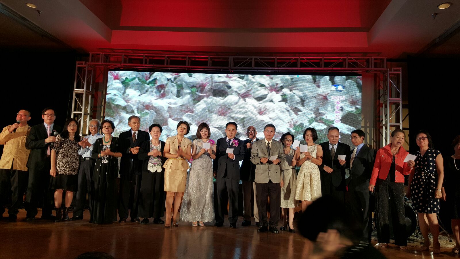 - 駐休士頓辦事處黃敏境處長與休士頓客家會於104年國慶餐會合唱「客家本色」歌曲。
