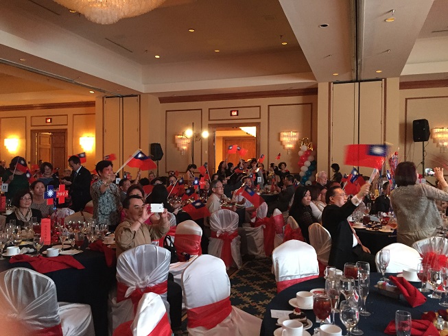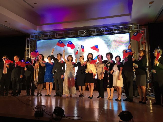 - 104年國慶餐會近尾聲時駐休士頓辦事處黃敏境處長夫婦及與會貴賓一起上台高唱「明天會更好」並帶領全場賓客揮舞國旗。