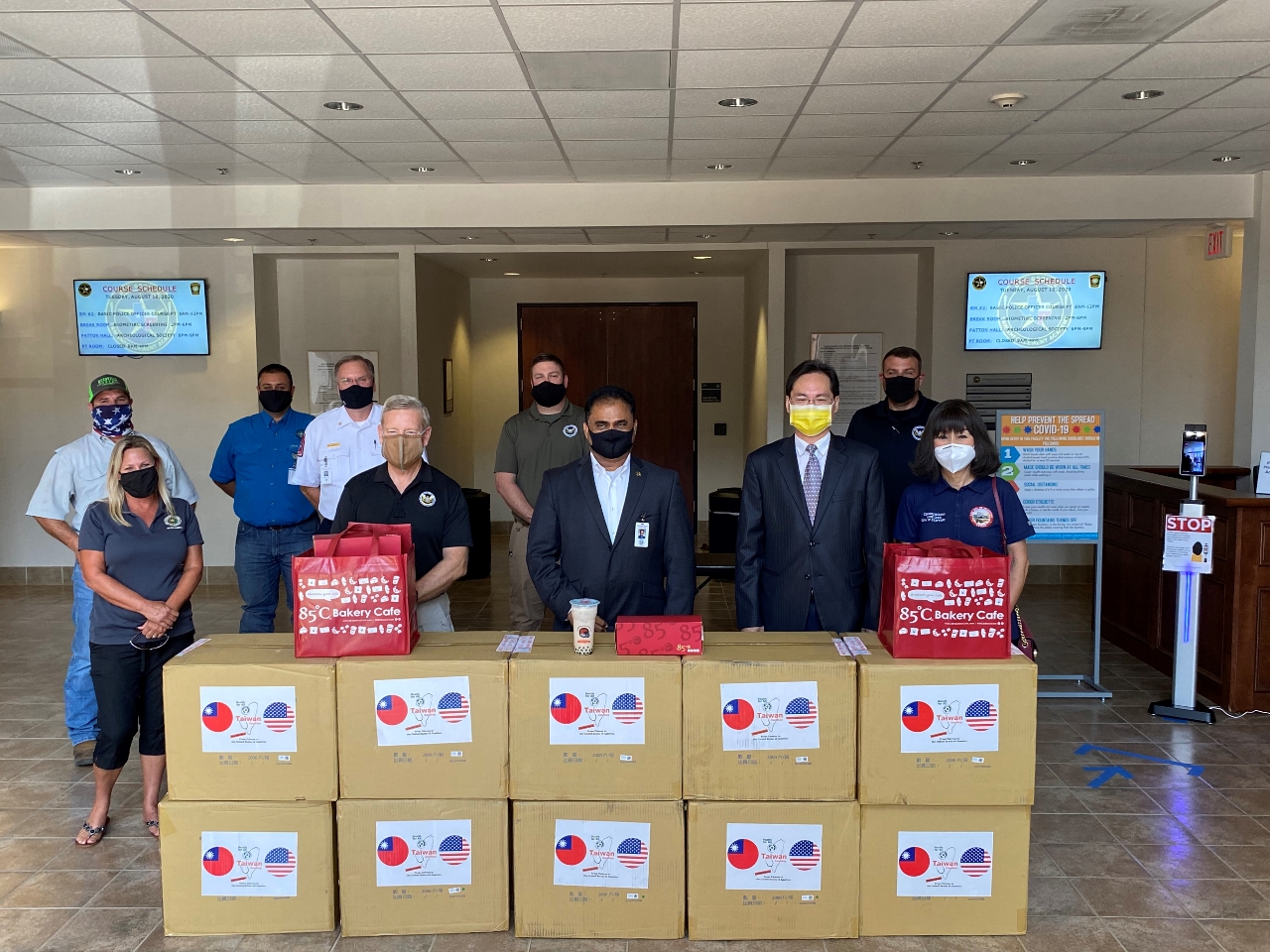 為持續發揮「台灣能幫忙,而且台灣正在幫忙」(Taiwan can help, and Taiwan is helping!)的精神,駐休士頓台北經濟文化辦事處羅復文處長於8月18日下午代表台灣捐贈20,000片外科口罩給福遍郡(Fort Bend County),並特別致贈具台灣特色之珍珠奶茶及鳯梨酥慰勞該郡警、消等第一線工作人員,由郡長KP George (D-TX)親自受贈,史塔福市(Stafford)市議員譚秋晴女士(Alice Chen)、福遍郡緊急管理副協調人Alan Spears、副緊急事務長Brian Petrilla、副風險管理長JT Pena及緊急管理專員Tony Scharp等緊急事務部門代表及媒體記者共約10餘人在場觀禮見證。