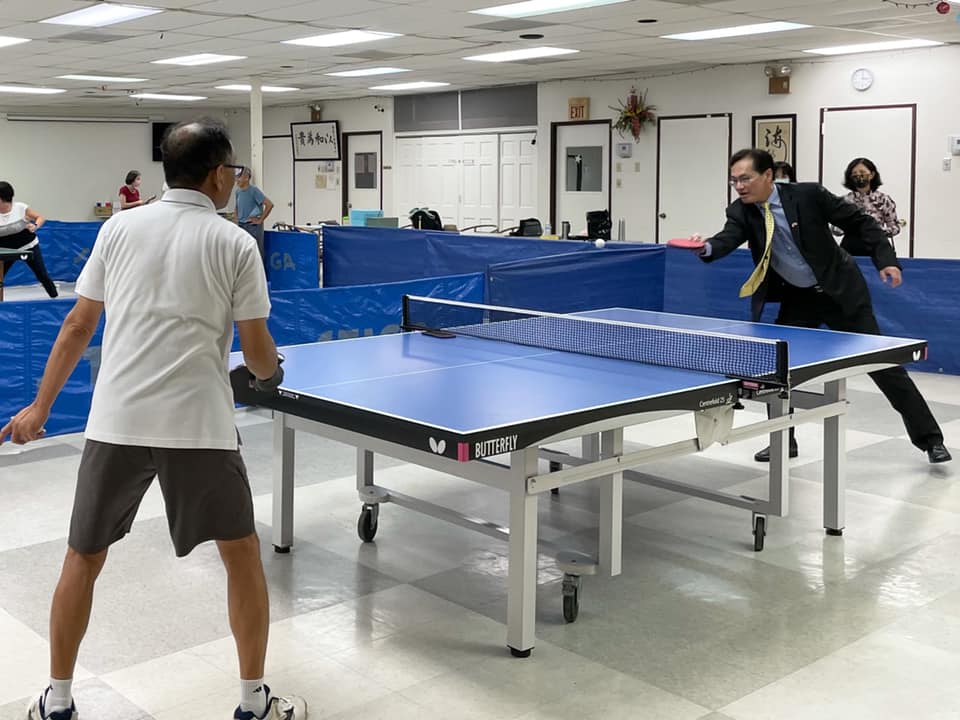 台灣人活動中心成立於1991年,提供台語、華語、西語及英語等多項語言課程,以及卡拉OK、舞蹈、太極、瑜珈、氣功及桌球等多項活動,肩負傳承台灣傳統文化之重責,是台灣鄉親學習、聚會、娛樂的好去處。疫情期間雖暫無大型室內活動,仍提供場地給大家鍛鍊體魄及健身,一流的桌球設施讓羅處長忍不住也下場小試身手,與鄉親同歡。