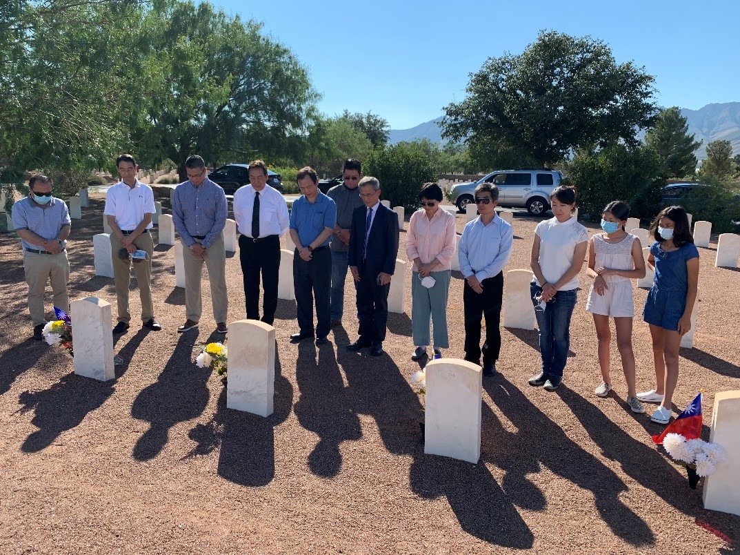 駐休士頓台北經濟文化辦事處經濟組徐炳勳組長奉派於本(10)月3日赴德州艾爾帕索市(El Paso)布利斯堡國家公墓(Fort Bliss National Cemetery),向70多年前在美國因公殉職之中華民國空軍英靈獻花致敬。艾爾帕索市台灣商會會長廖啟宏和當地僑胞祁沁萍等13人亦陪同致敬。