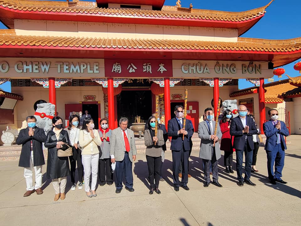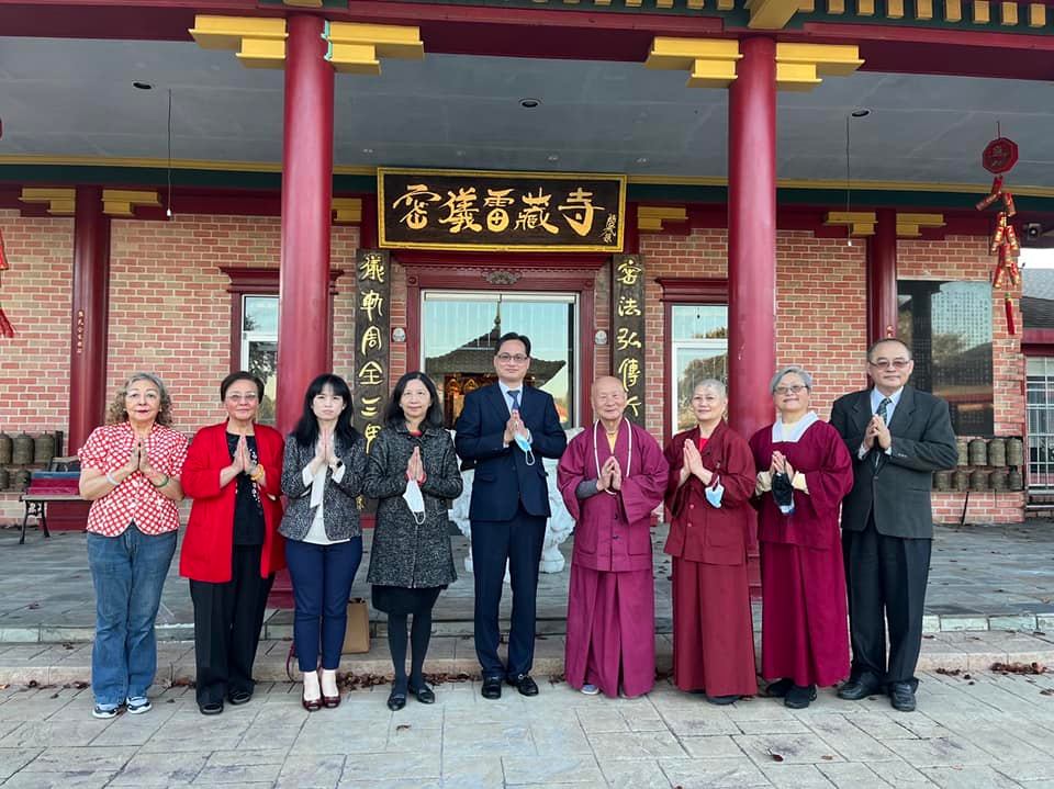 駐休士頓辦事處羅復文處長新春期間馬不停蹄,偕同本處王副處長韋龍及相關同仁,前往佛光山中美寺、潮州會館本頭公廟、密儀雷藏寺以及天后廟等,為美南地區僑胞祈求平安,並祝福台灣風調雨順、國泰民安。