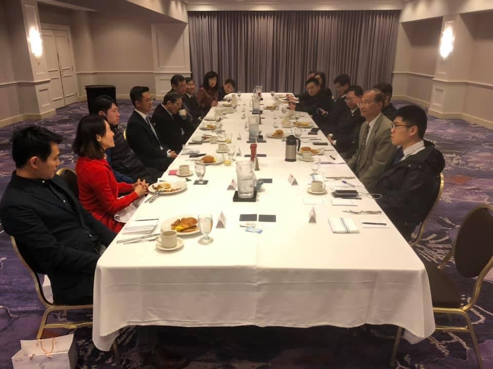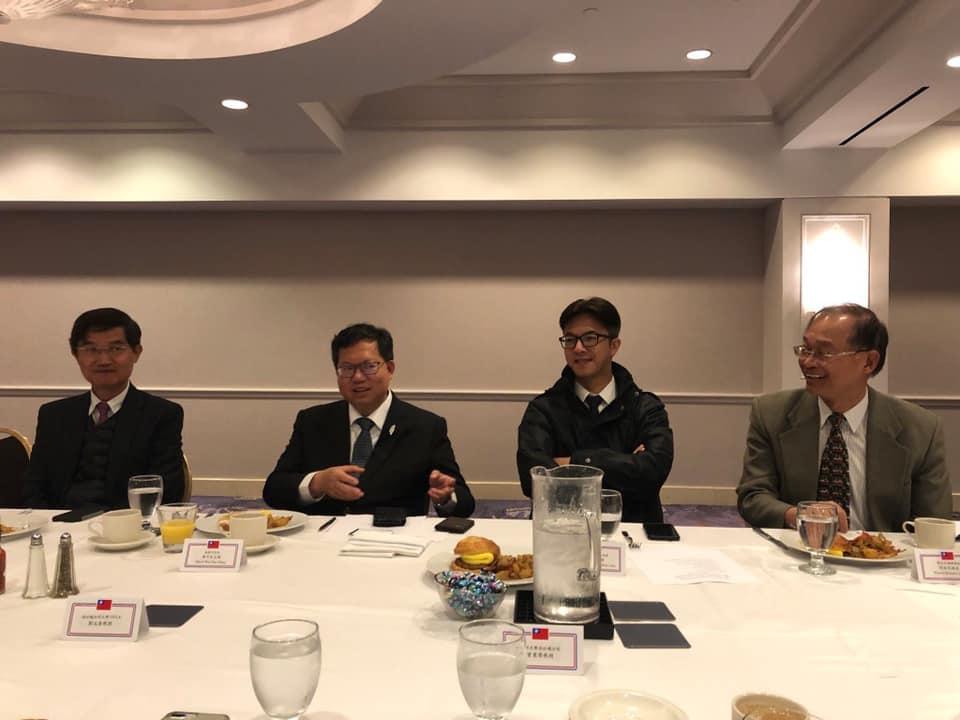 桃園市長鄭文燦訪問洛杉磯,2019年3月3日上午由駐洛杉磯科技組安排,與新創公司及學者專家進行早餐座談會,參加者包括UCLA 教授劉文泰、曾憲榮、束依弦,及西來大學張錫峯校長、加州州大長堤分校教授鄭龍光、李曉曄,以及Niche Biomedical 執行長羅怡凱、Ambidio共同執行長謝沛倫、倍加能無線充電公司執行長吳哲民等九人,就如何改善台灣新創環境及基礎研究成果轉化問題交換意見,氣氛熱烈。鄭市長對新創、科技議題,瞭解深入,對桃園科技產業發展,也有深度分析;他對問題的掌握度及高度,深獲與會人士好評,工作敬業認真,「胖周瑜」的美譽恰如其分。