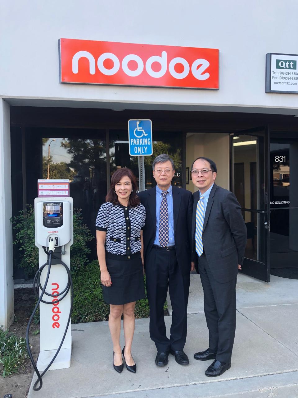 王廷驊組長(中)於2019年9月份拜會Noodoe物聯網CEO Jennifer Chang。