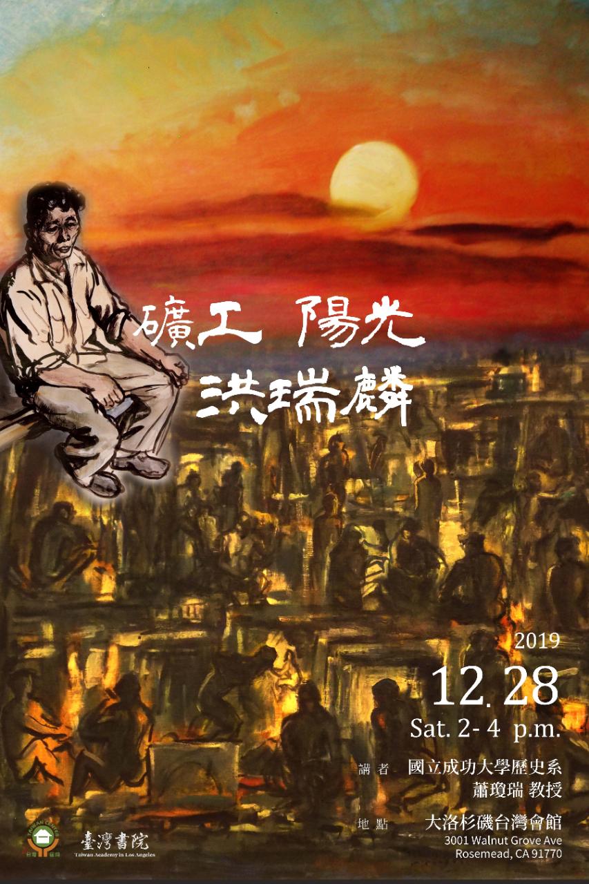 為了呈現礦工畫家洪瑞麟一生精彩的畫作,洛杉磯臺灣書院特別與大洛杉磯台灣會館合作舉辦「礦工.陽光.洪瑞麟」藝術講座,並邀請擅長臺灣藝術史的蕭瓊瑞教授親自到洛杉磯主講,將搭配嚴謹的史實考證與敏銳的圖像解讀,以生動活潑、深入淺出的方式引領觀眾沉浸到藝術的世界,共同體驗洪瑞麟對於基層社會、勞苦小民的由衷關懷與真摯情感。