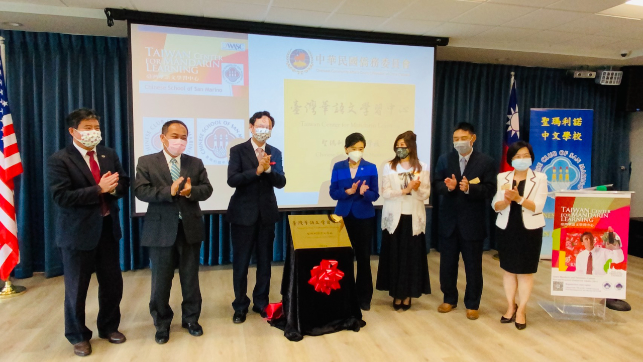 僑務委員會童振源委員長於本(2021)年8月底訪問美國,首站為洛杉磯,除了拜會僑社、與僑台商團體以及僑務榮譽職人員座談,以加強聯繫合作外,此行另一重要目的為推廣具台灣特色的華語文教學,於8月31日上午赴聖瑪利諾中文學校為新設立的「臺灣華語文學習中心」進行揭牌。