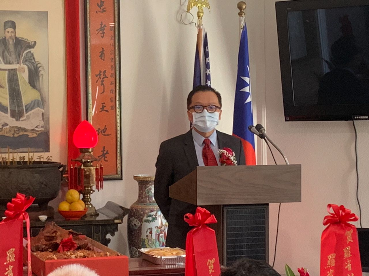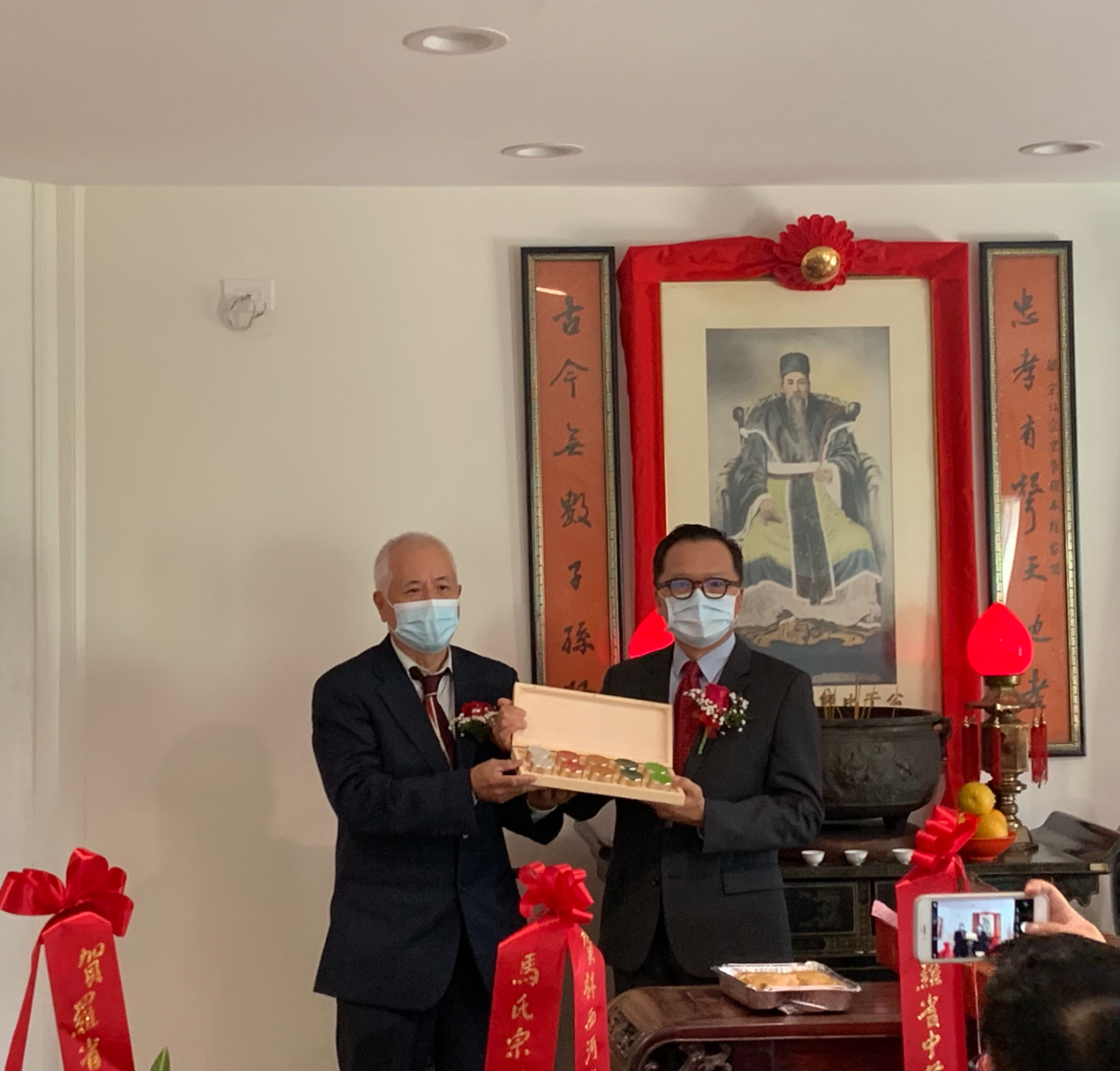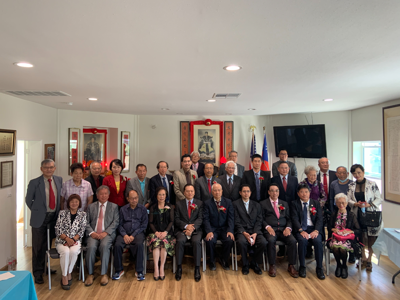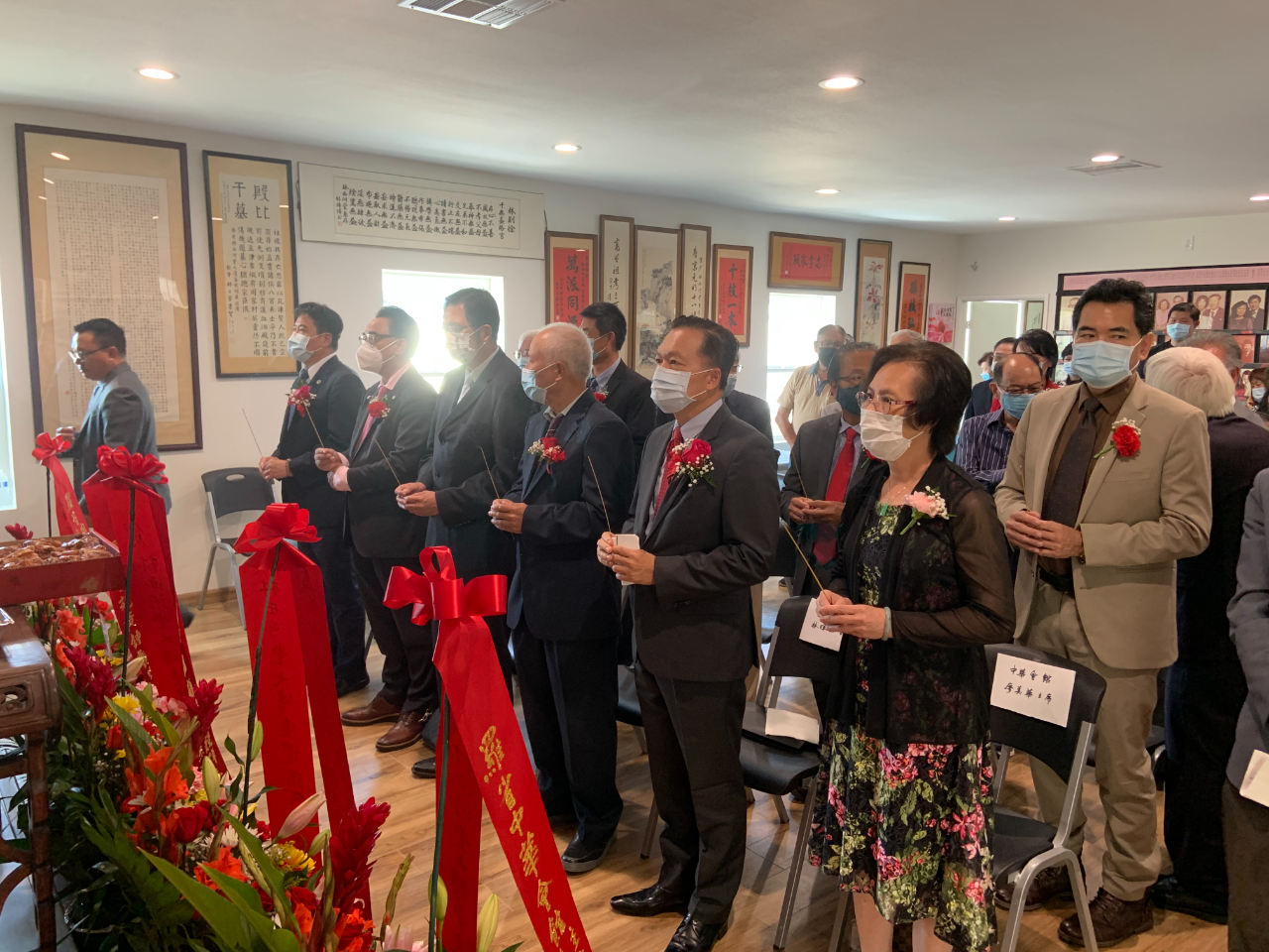 羅省林西河堂於本(2021)年9月25日(星期六)上午舉辦堂所大樓重建落成暨建樓41周年祭祖典禮,駐洛杉磯台北經濟文化辦事處林暉程副處長偕同仁出席,當天包括林西河堂舊金山總堂林大正主席、蒙特利公園市林達堅前市長、羅省中華會館廖美華主席等四大首長與顧問、所屬僑團領袖及洛杉磯林氏宗親約50人齊聚堂所,遵行古禮向太始祖比干公、媽祖林默娘及祖先上香祭拜,浴火重生後全新落成的堂所廳堂供桌前方擺放各界送來的祝賀花籃,儀式簡單且隆重。 林副處長致詞時表示,從去年10月初到洛杉磯來服務轉眼已將屆一年,由於COVID-19疫情的影響,加上先前林西河堂遭受祝融之災,身為宗親遲至今日才踏入堂所,感佩昆仲們比照先前1994年前輩集資成立會所的精神,出錢出力讓堂所恢復往昔美侖美奐的樣貌,在疫情期間重建竣工及舉辦建樓慶典更顯珍貴,同時感謝鄉賢的熱情接待,並代表黃敏境處長致贈該堂金豬及茶葉禮盒。 林西河堂林鐘博主席致詞表示感謝火災重建期間宗親出錢出力、修復原有的歷史文物,今天特別感謝大家光臨並見證堂所的全新風貌,並期盼堂所的會務迎向柳暗花明的未來。 本次活動出席人員尚包括林西河堂林繼銘副主席、林偉權顧問、林師雄顧問、林社潮評議長,以及羅省中華會館李金生副主席、鄺松齡監事長、蔡惠玲副監事長、馬樹榮、張自豪、伍競群、伍尚齊、方杰洲、梁永泰、聶澤英、黃鍾艷珍、吳玉熙等顧問,駐洛杉磯台北經濟文化辦事處林碩彥組長、葉立傑組長、洛杉磯華僑文教服務中心張皓鈞主任及鄭心茹副主任等。