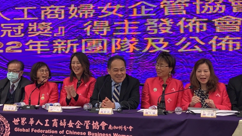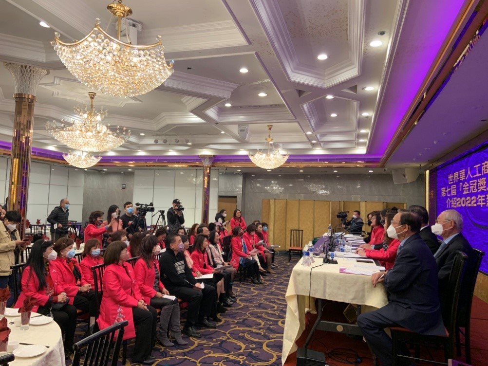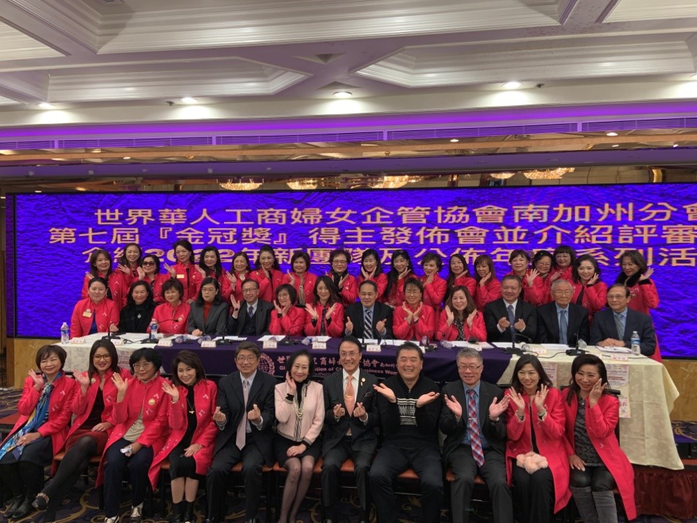 2022年2月24日世界華人工商婦女企管協會南加州分會第七屆金冠獎得主發布及介紹2022年新團隊記者會現場約60人參加