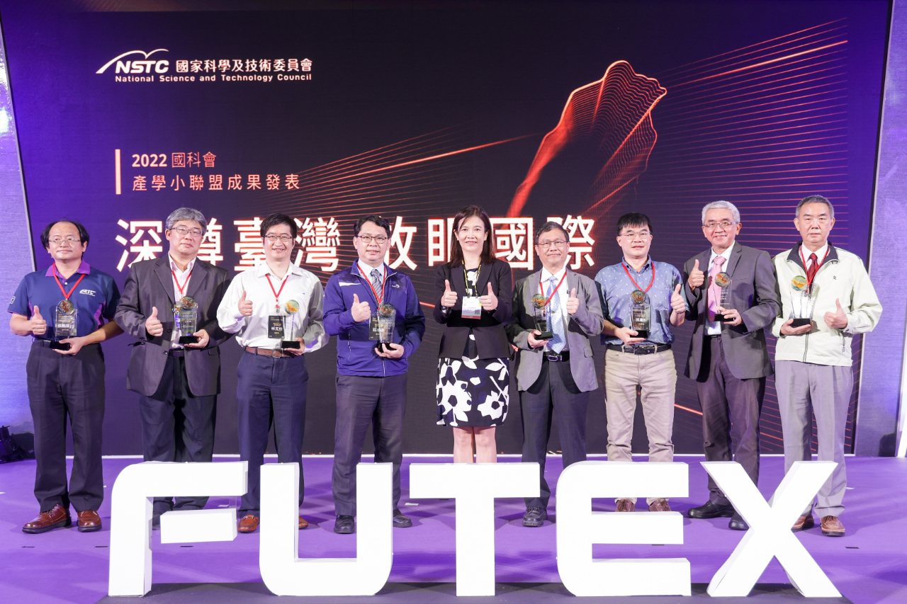 國家科學及技術委員會於本(2022)年10月14日,在2022「未來科技館」舉辦「新穎科技 x 產學合作技術發表」活動,表揚2021年度成果績優的產學小聯盟,產學處許增如處長(中)與產學小聯盟績優聯盟受獎人員合影。