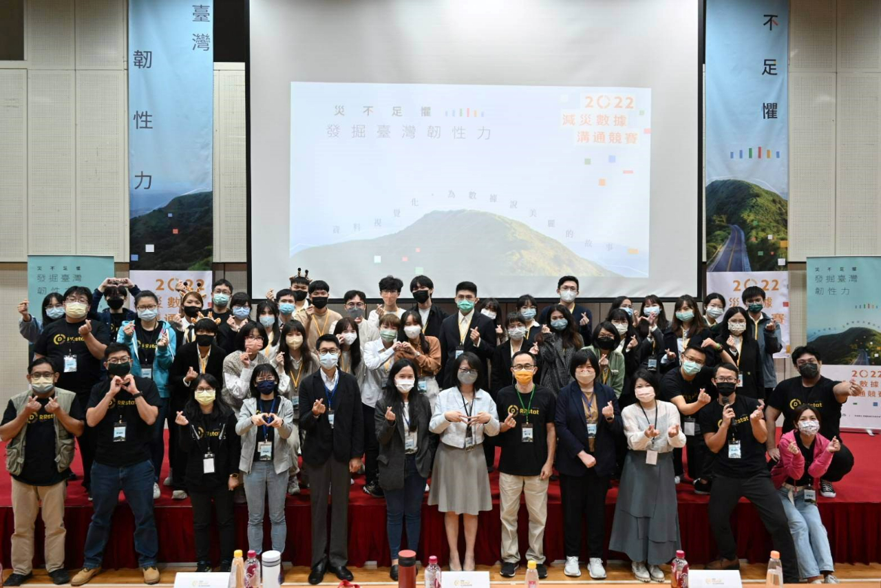 由國家科學及技術委員會轄下國家災害防救科技中心主辦的「『災不足懼 ─ 發掘台灣韌性力』2022減災數據溝通競賽」獲獎名單,已於本(2022)年12月3日揭曉。圖為參加競賽活動者的合影。