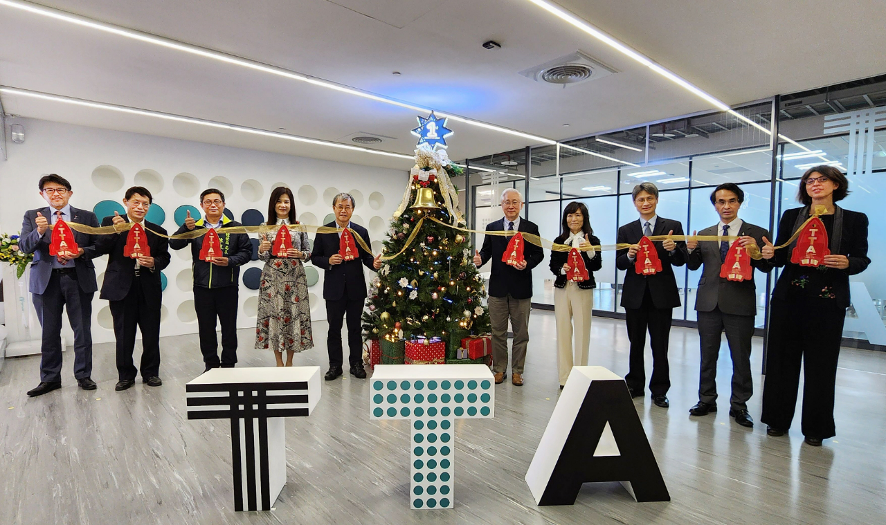 國家科學及技術委員會於本(2022)年12月16日,舉辦「臺灣科技新創基地」(Taiwan Tech Arena , TTA)南部據點成立一週年慶祝活動,圖為國科會吳政忠主委(左6)、日本臺灣交流協會古田清史副所長(左1)、中山大學鄭英耀校長(左5)、及成功大學蘇慧貞校長(左7)等多位貴賓在百人見證下共同串起火箭升空,傳遞祝福之聲。