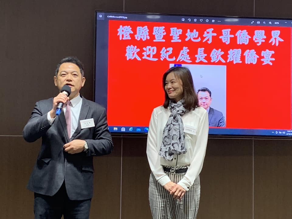 紀處長致詞向橙縣與聖地牙哥僑界問候,並介紹夫人黃慧如(Ruby)予大家認識。