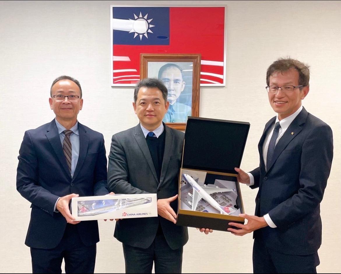 紀欽耀處長很高興於週一(27日)接待來訪的 China Airlines 中華航空鄭玉麟美洲地區處長兼洛杉磯分公司總經理、池志超美洲貨運中心總經理、張國楨協理、李宜真經理,以及王志賢經理。