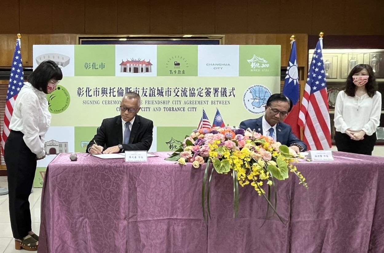 台灣時間112年3月15日洛杉磯郡托倫斯市(City of Torrance)市長陳光豪(George Chen)與彰化市林世賢市長共同簽署締結友誼城市合作備忘錄,以行動展現合作交流的決心,深化台美互信友好。
