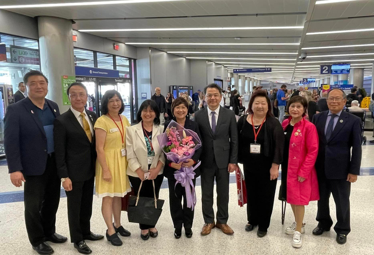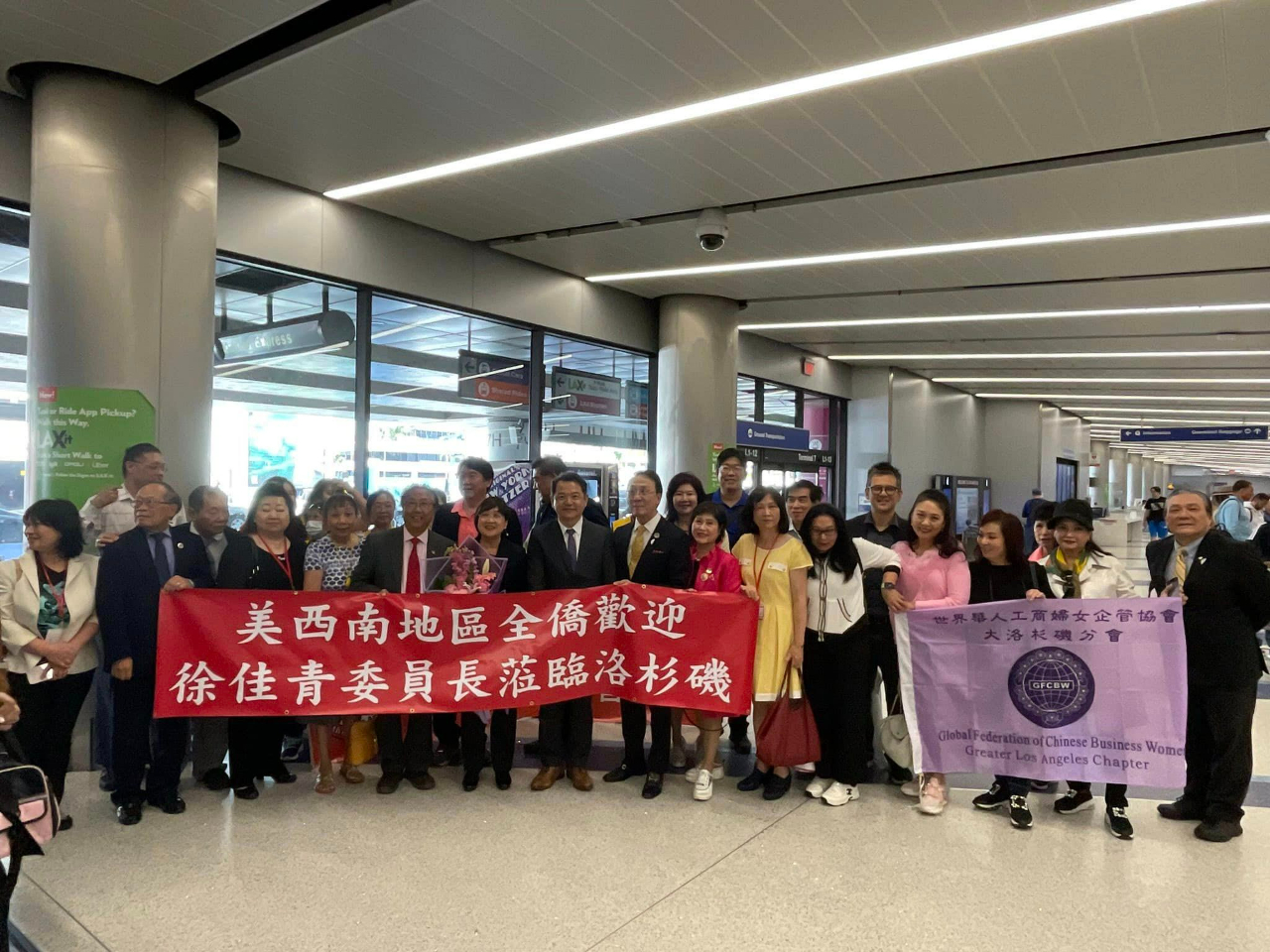 徐佳青委員長抵達洛杉磯訪問,受到僑領們熱情的歡迎