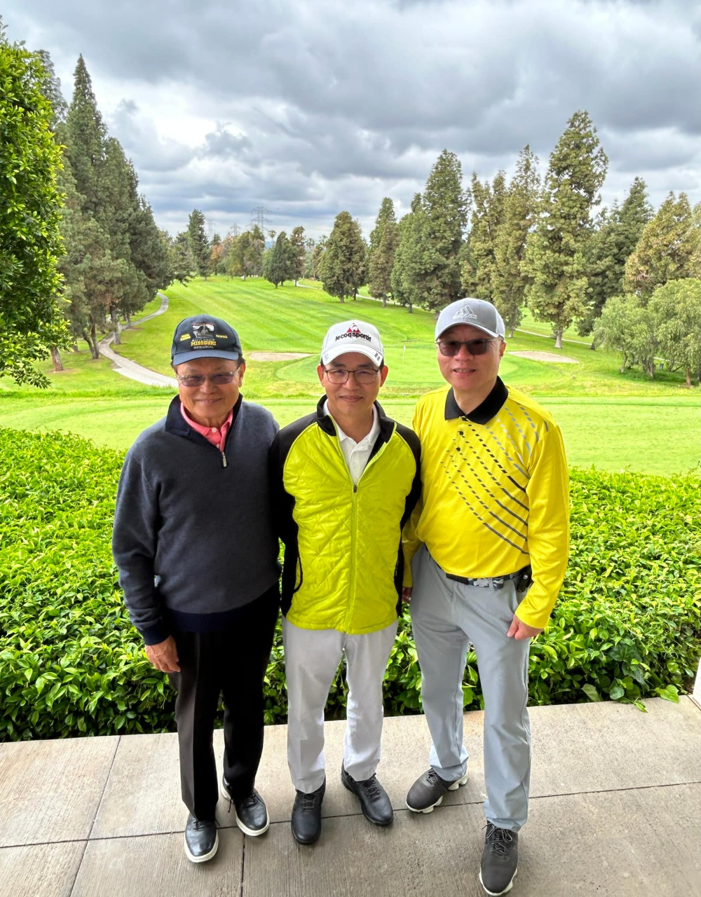 張正育副處長和南加州中華民國高爾夫球聯合會創會會長邱垂煌(左一)及現任會長葉俊麟合影(右一)
