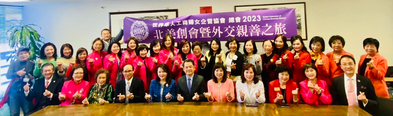 紀欽耀處長很高興於5月5日(週五)在本處接待遠從台灣來美訪問的「世界華人工商婦女企管協會」莊住維總會長,以及總會、北美洲各分會的團隊乙行32人,姊妹們陣容堅強,都是各地各領域的傑出女性企業家!