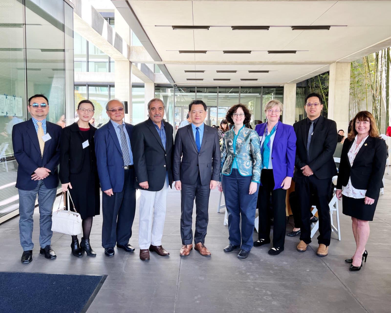紀欽耀處長與UCSD校長及該校台灣研究中心主任等合影(左起:本處台灣書院簡德源主任、教育組藍先茜組長、UCSD 台灣研究中心廖炳惠主任、UCSD Pradeep Khosla校長 、紀處長、UCSD Elizabeth Simmons 副校長、UCSD 台灣研究中心Nancy Guy 副主任、本處科技組陳嘉元組長、UCSD藝術與人文學院Cristina Della Coletta 院長
