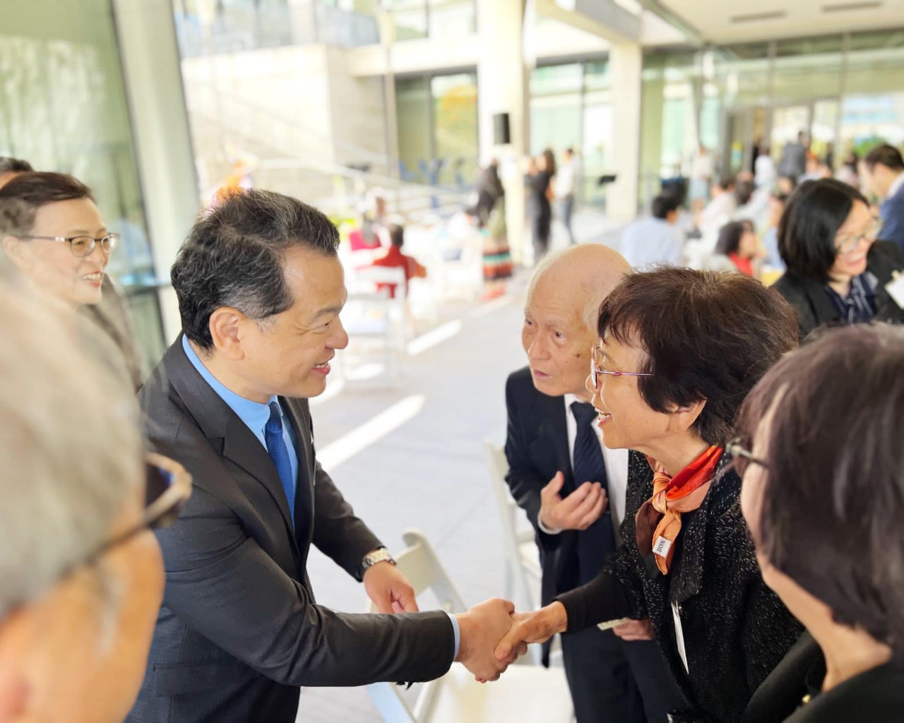 紀處長與UCSD 台灣研究中心捐助者陳秋山博士寒暄致意