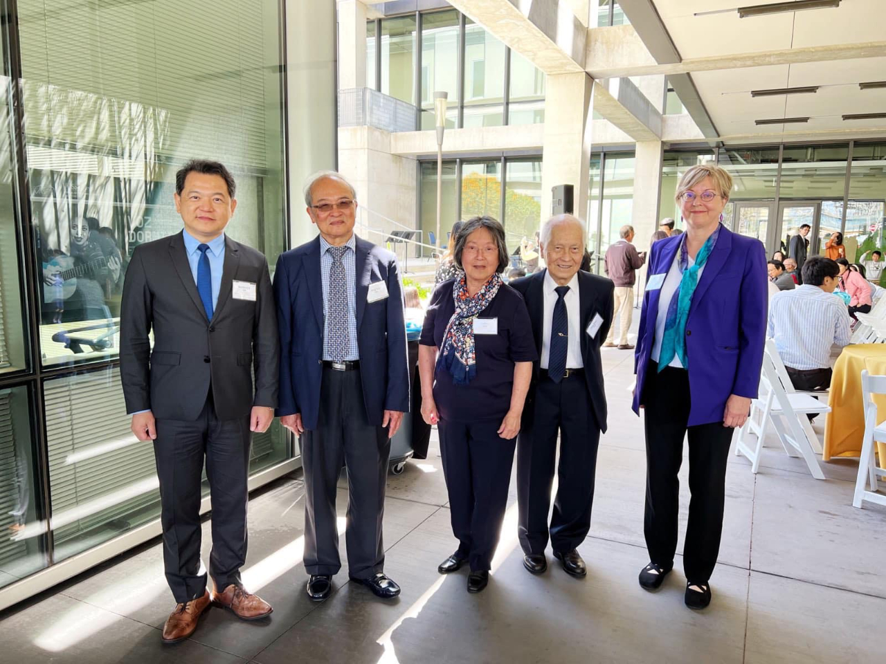 紀處長與UCSD 台灣研究中心主任廖炳惠教授(左2)、捐助者陳秋山博士(右2)及夫人陳如賓女士(中),以及UCSD 台灣研究中心副主任蓋南希教授(右1)合影圖4