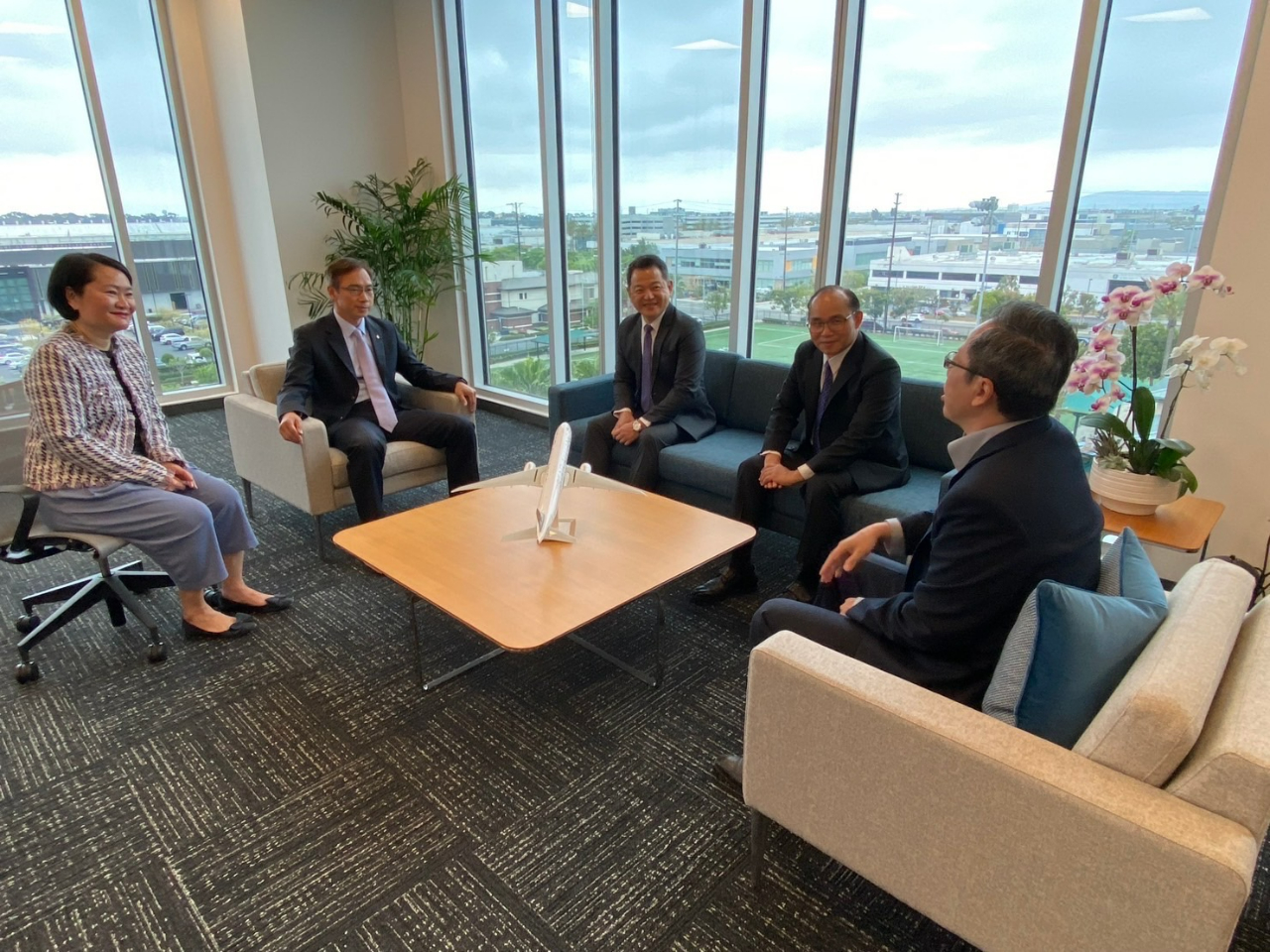 紀欽耀處長很高興偕同仁於6月5日上午拜會「長榮航空美洲總分公司」(EVA Airways Corporation America Head Office),受到蘇偉仁副總經理、鍾凱成協理、葉佳怡協理及客運部李曉盈課長熱誠的歡迎與接待。