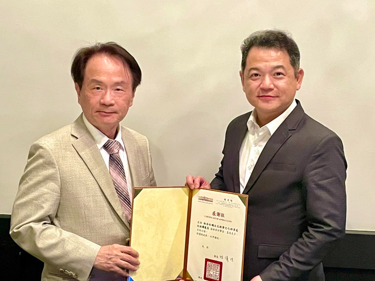國史館陳儀深館長就本處協助參訪事宜,致贈紀欽耀處長感謝狀。