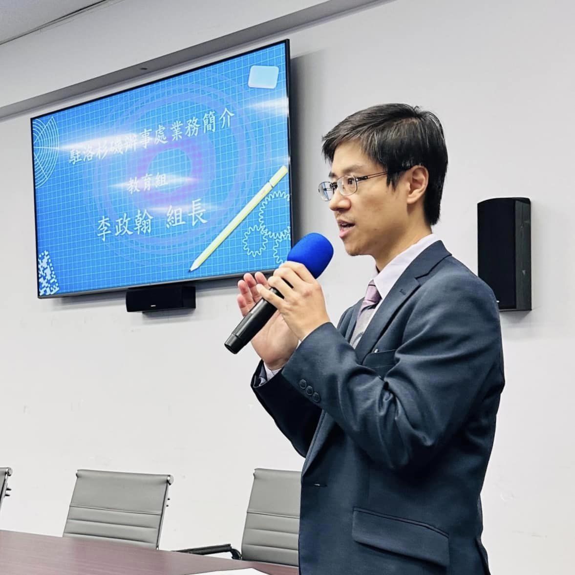 教育組李政翰組長介紹留學生相關資訊。